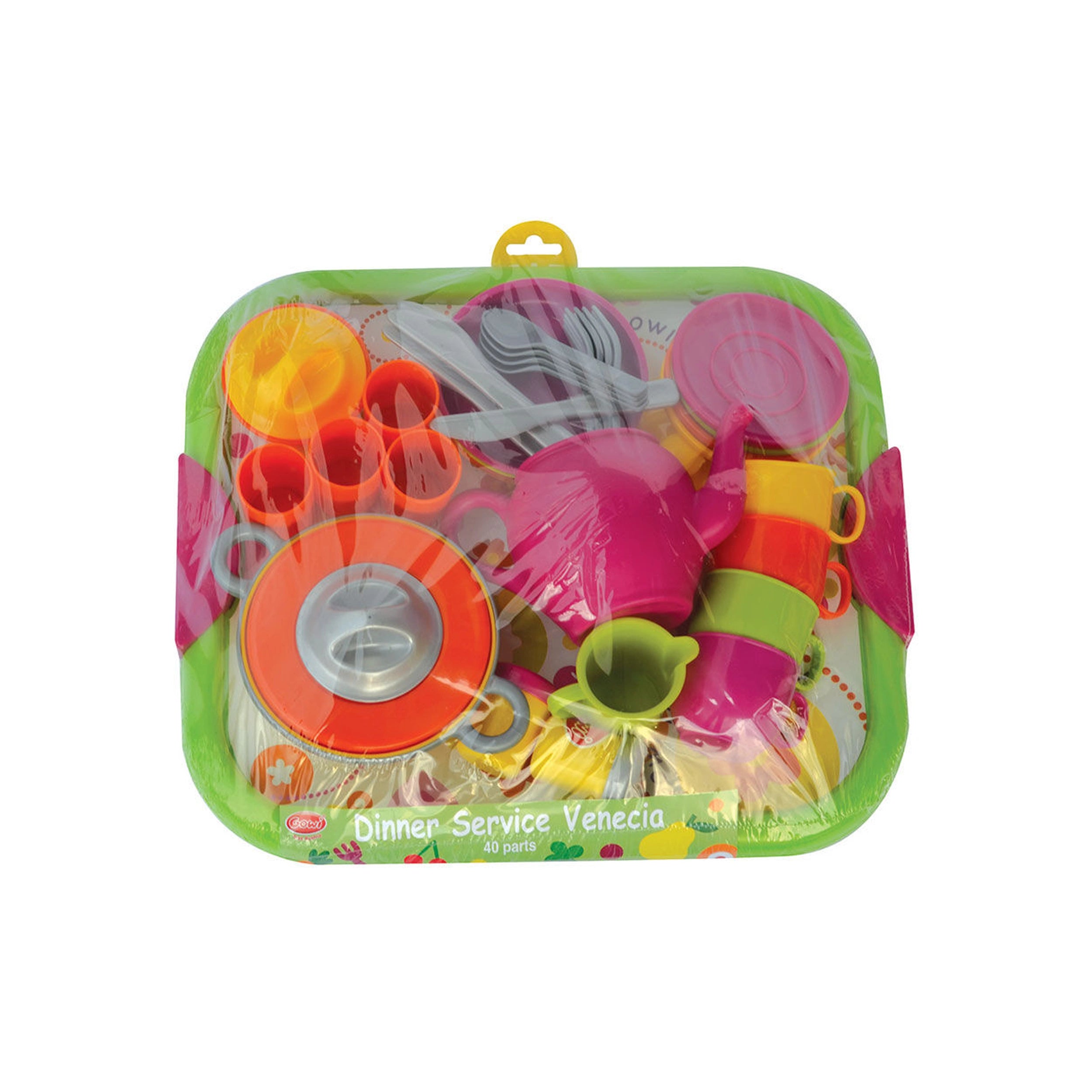 Introducing the GOWI Dinner Service Venecia, a delightful 40-piece pretend play set designed to inspire creativity and imaginative role-playing in children. This beautifully crafted dinner service allows young ones to explore the world of cooking, serving, and dining, making it an essential addition to any playroom. With its vibrant colors and realistic design, the GOWI Dinner Service Venecia encourages children to engage in social interactions and develop essential life skills through play.