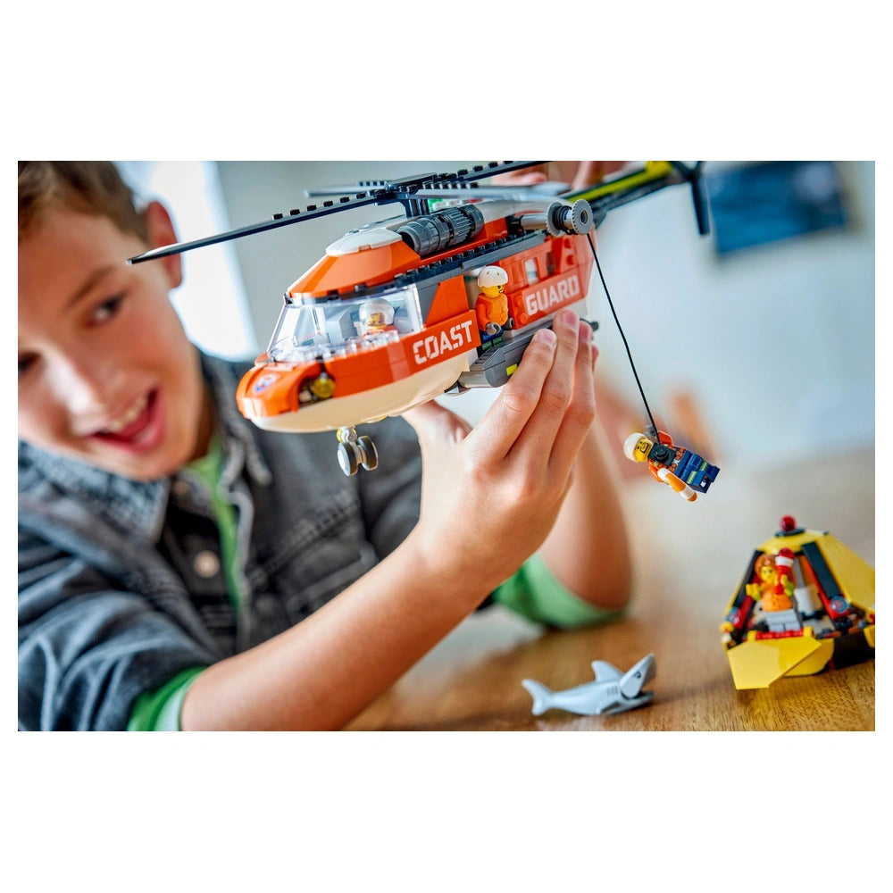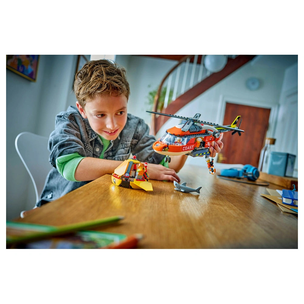 Included in this set are four minifigures: a pilot, a civilian, and two coast guards, along with a shark figure to add an element of adventure. The minifigures come equipped with accessories such as a medic kit, binoculars, a walkie-talkie, and a life preserver, ensuring that kids have everything they need for imaginative rescue missions. This comprehensive set encourages collaborative play, allowing friends and siblings to join in on the fun.