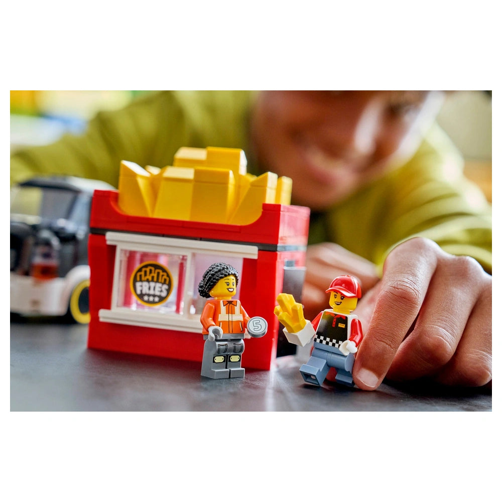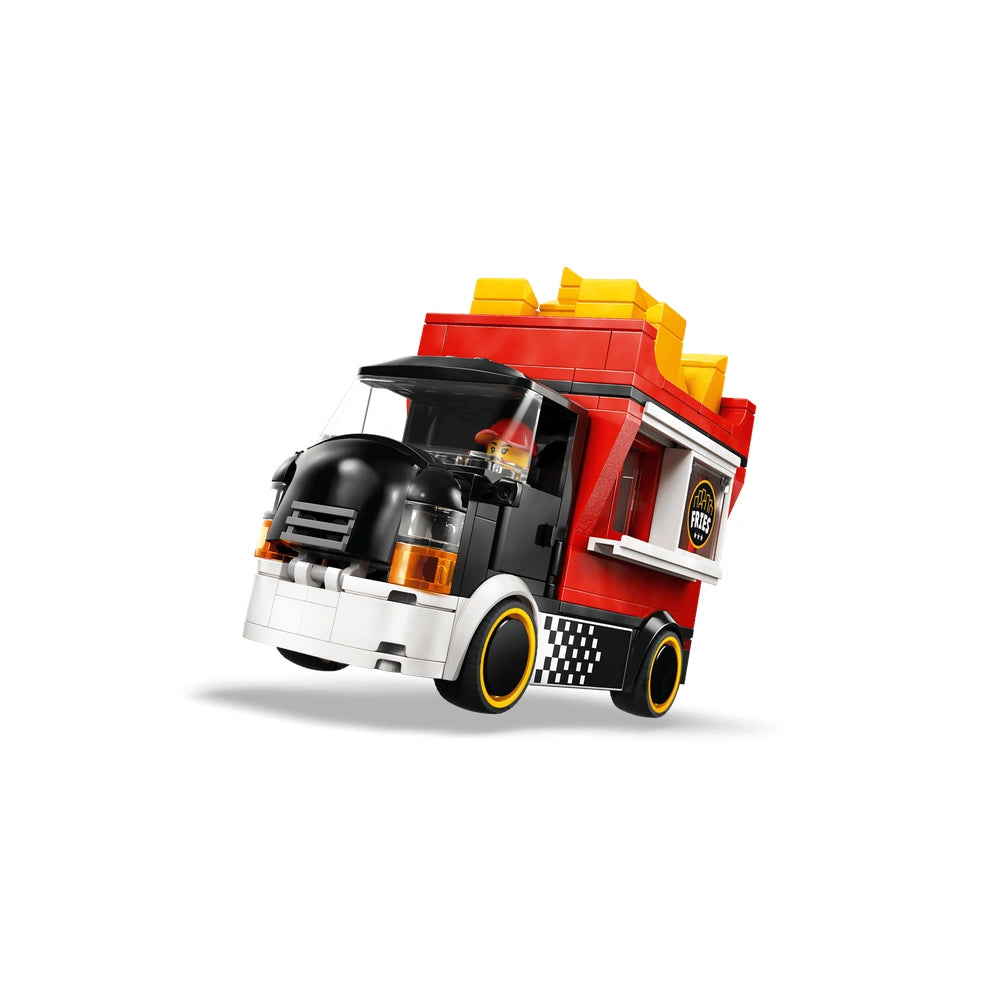 The LEGO® City Fries Food Truck set includes everything needed to create a charming food truck experience. The standout feature is the detachable kiosk, cleverly shaped like a giant carton of fries, which adds a fun twist to the play experience. Children can easily remove the roof to reveal a detailed food prep area, complete with a fryer, condiments, and a sliding service window. This realistic setup encourages kids to engage in role-playing scenarios, serving hungry customers and managing their very own food truck.