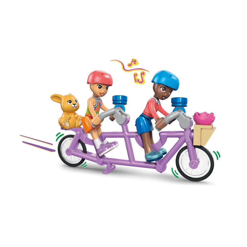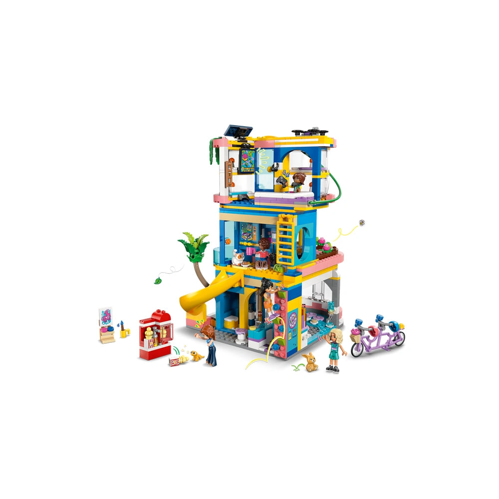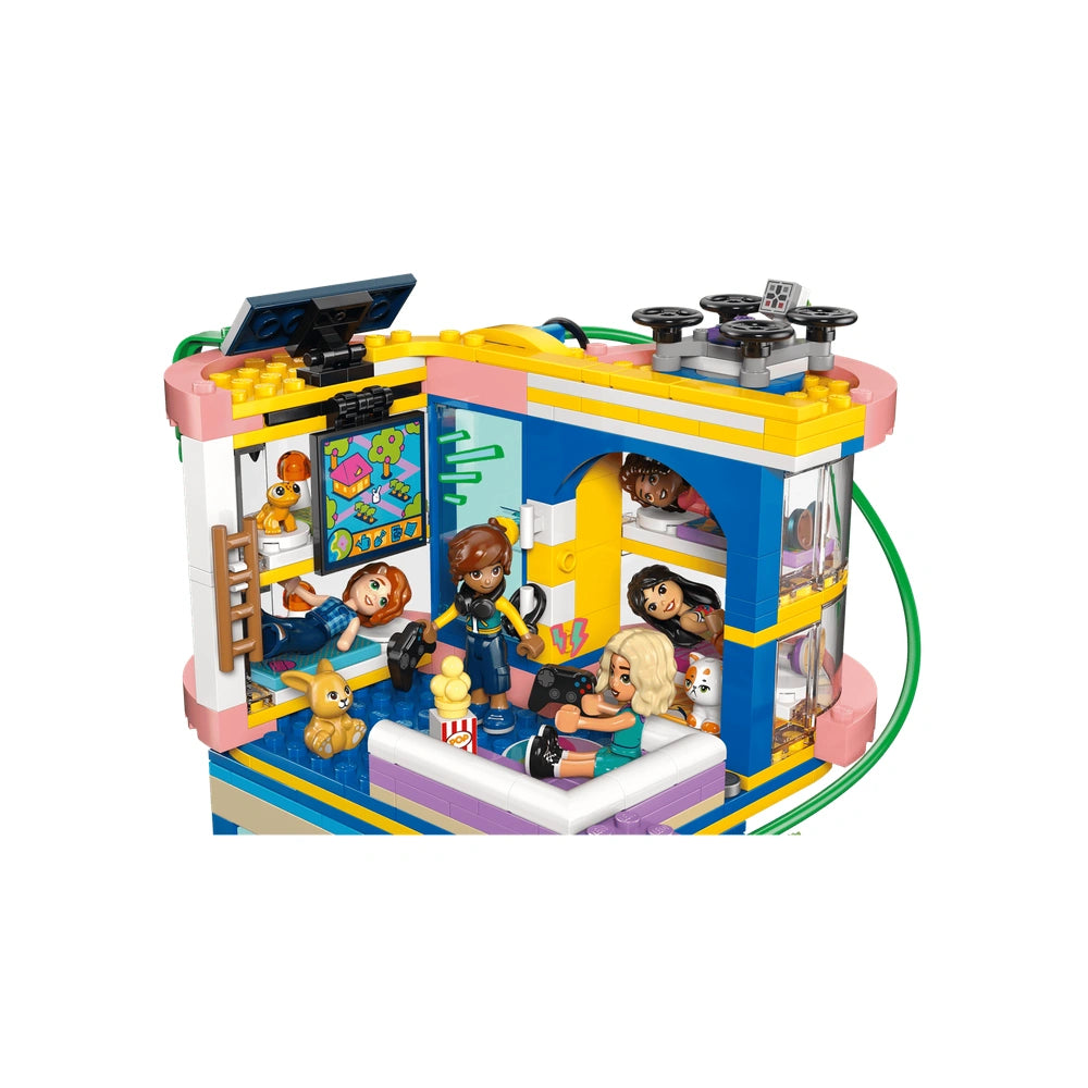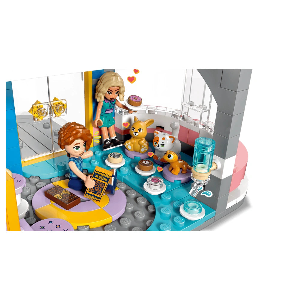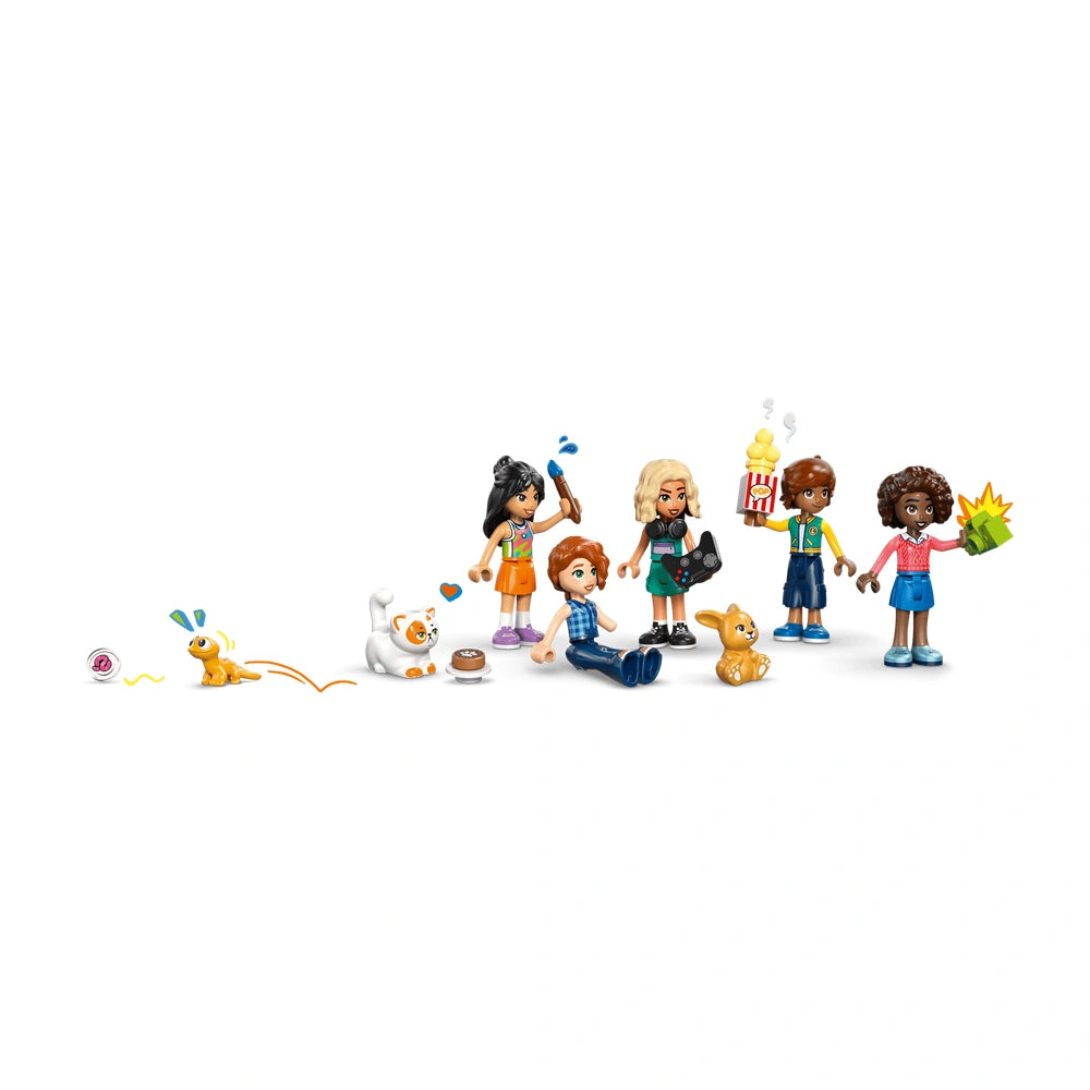 The Heartlake City Friends Club House comes complete with five delightful minidolls: Autumn, Nova, Aliya, Leo, and Liann, along with three adorable pets—Churro the cat, Honey the bunny, and Popcorn the gecko. Each character adds a unique element to the play experience, allowing children to explore various roles and scenarios. The set encourages collaborative play, making it a fantastic option for friends and family to join in on the fun. With a total of 794 pieces, the building set offers ample opportunities for creativity and teamwork.
