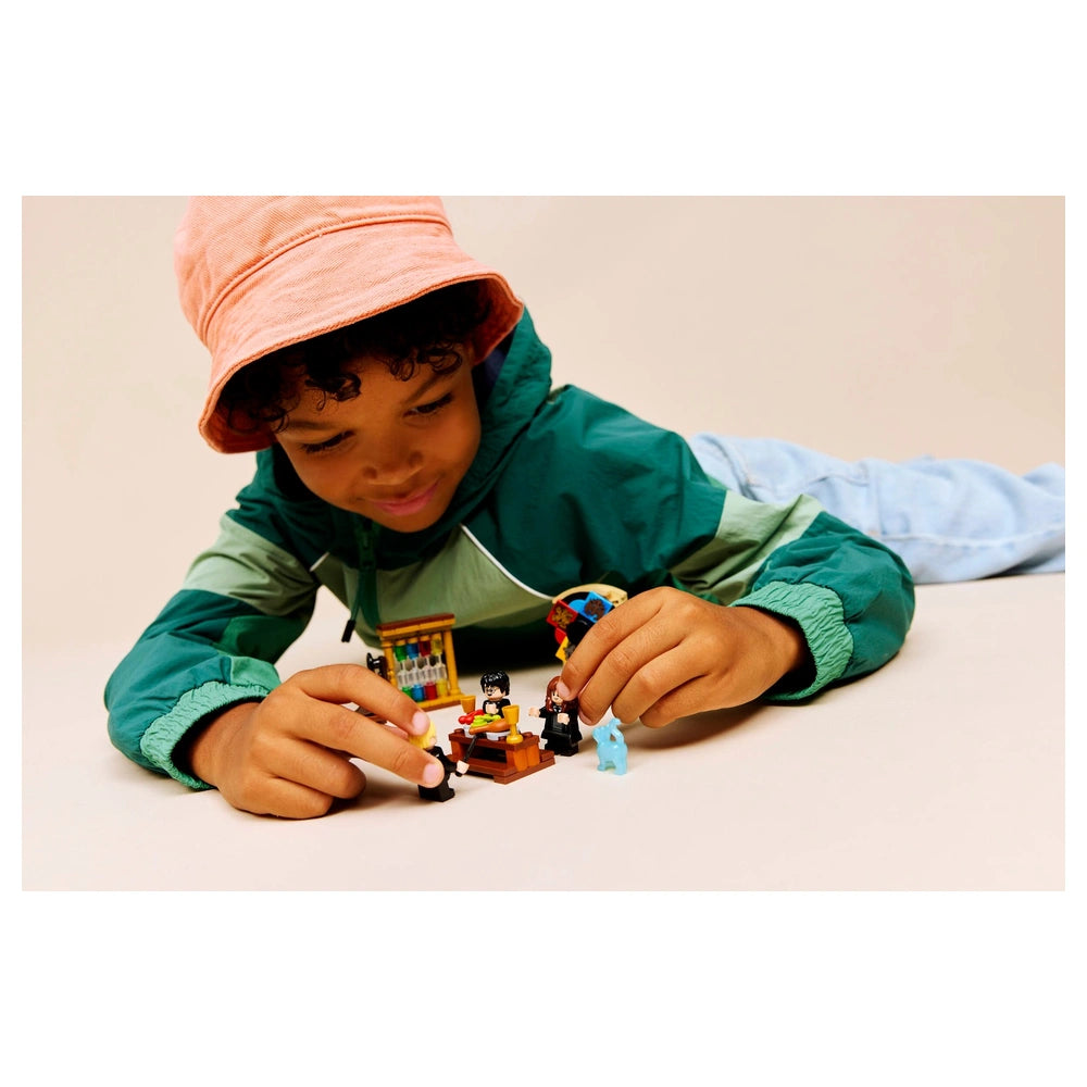 The centerpiece of this set is the Sorting Hat™ ceremony, a magical event where students are assigned to their respective Hogwarts houses. Included are four detailed LEGO Harry Potter minifigures: Professor McGonagall™, Harry Potter, Hermione Granger™, and Draco Malfoy™, each equipped with their own wand accessory. Children can place the Sorting Hat on each character and spin the sorting wheel to determine whether they will join Gryffindor™, Slytherin™, Hufflepuff™, or Ravenclaw™. This interactive feature enhances the play experience, allowing kids to engage in role-playing scenarios that reflect the enchanting world of Hogwarts.