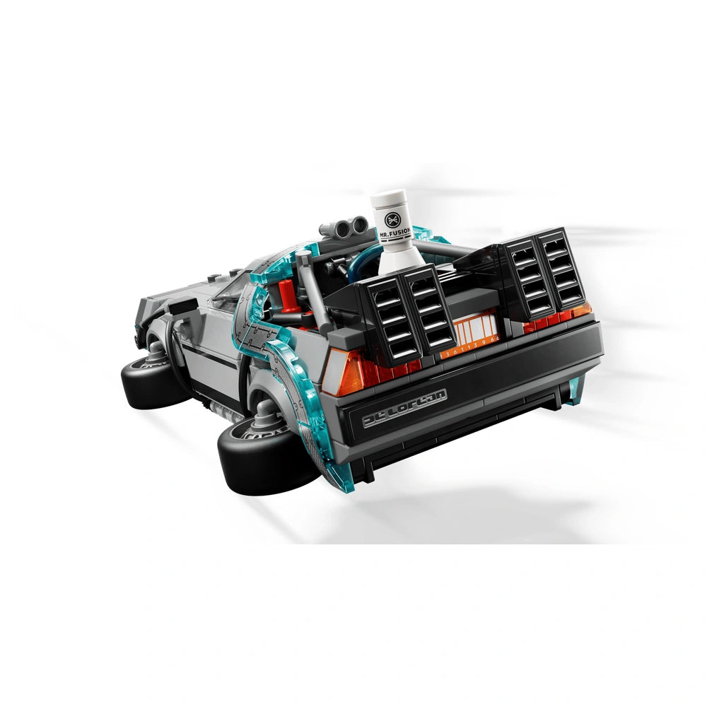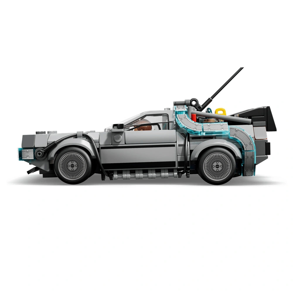 The LEGO Speed Champions Time Machine is a remarkable tribute to the iconic vehicle featured in the films. Builders can recreate the classic car with its signature lightning rod and California license plate from the first movie, or they can transform it into its futuristic flying version from the sequel. This transformation includes the addition of Mr. Fusion, an orange license plate, and sideways wheels, allowing fans to relive their favorite moments from both films. The attention to detail is evident, with features like rear air vents, a cockpit, the flux capacitor, and a time calculator, making this model a true collector's item.