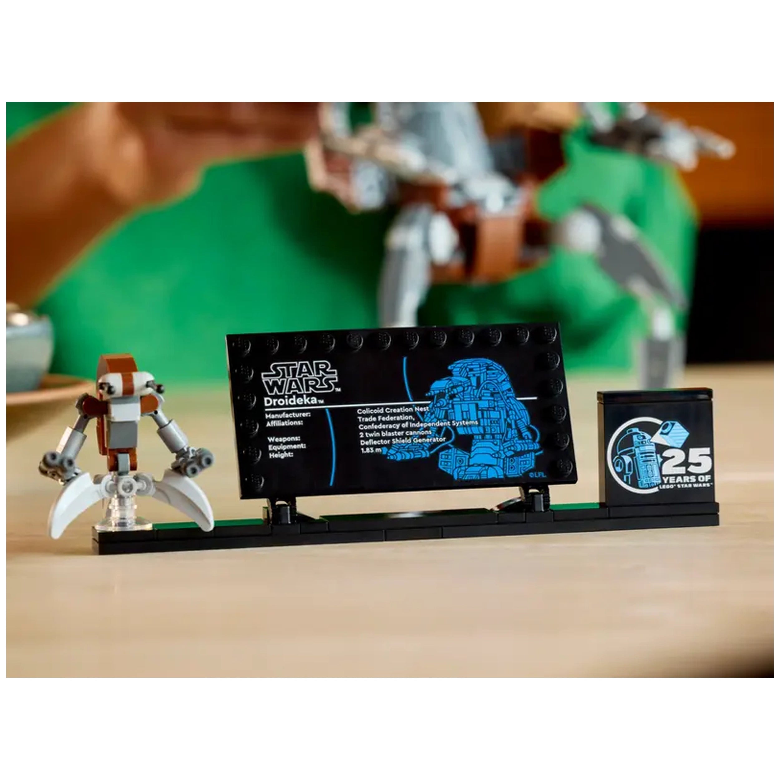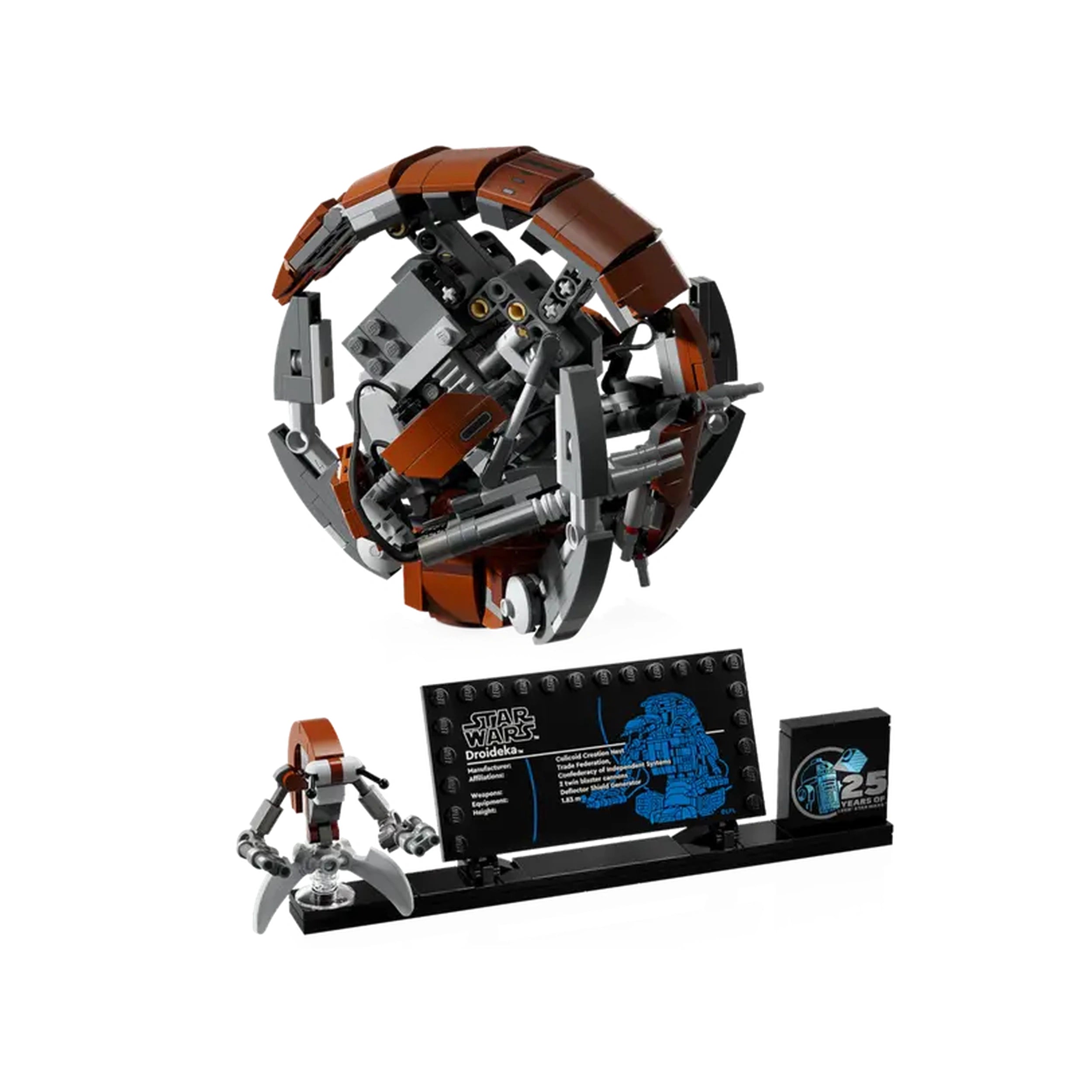 This construction set includes a dedicated stand that not only supports the Droideka but also features an information plaque that provides insights into this iconic droid. To commemorate the 25th anniversary, a special LEGO Star Wars brick is included, adding a unique touch to your display. The set also comes with a small LEGO figure of a Droideka, allowing for creative play and display options that are sure to delight both seasoned collectors and new fans alike.