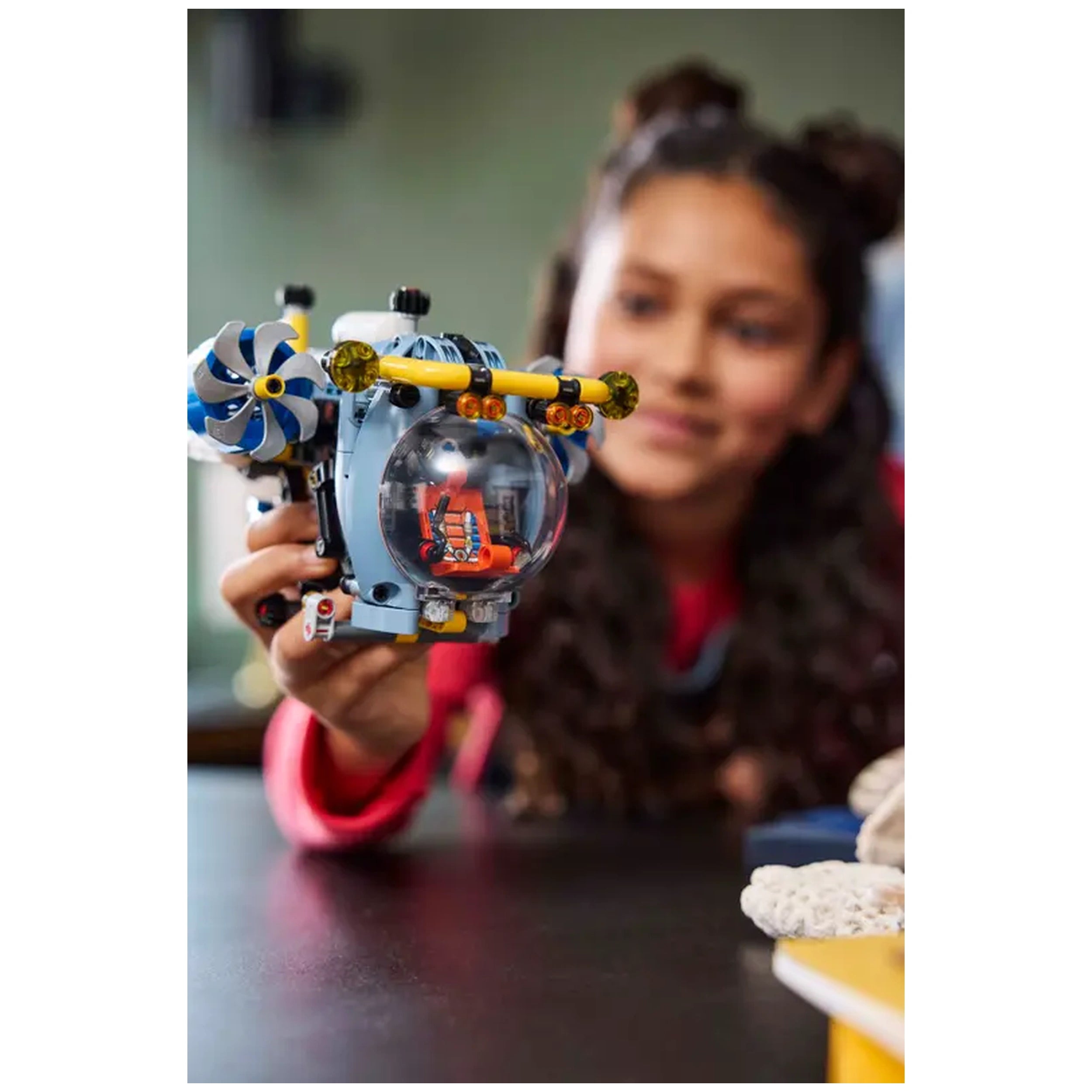 The Deep-Sea Research Submarine is equipped with an array of authentic components that mirror the functionality of real submarines. Featuring three spinning propellers, an opening cockpit, and an extending arm, this set allows children to engage in imaginative play while learning about the mechanics of underwater vehicles. The submarine's cockpit opens to reveal a detailed seat and controls, providing an immersive experience as kids navigate their own underwater adventures. This attention to detail ensures that every building session is both educational and entertaining.