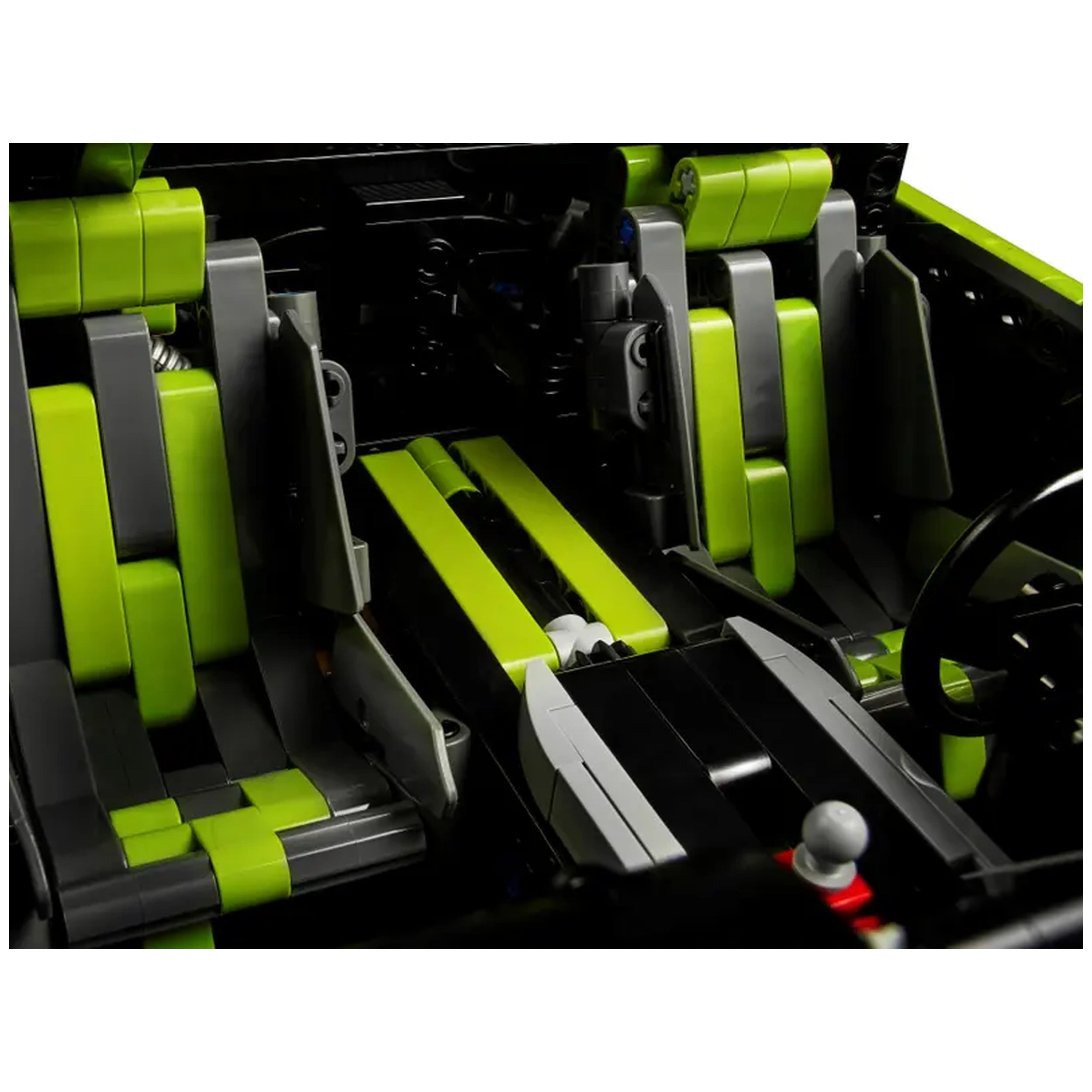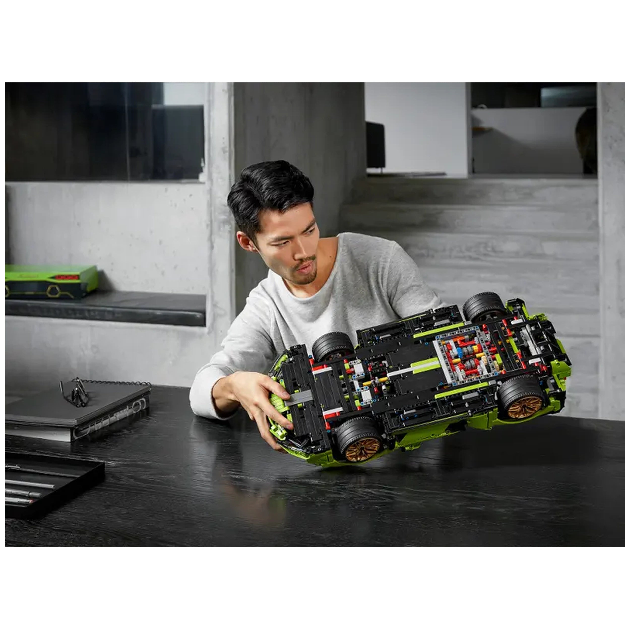 Measuring over 5 inches (13 cm) high, 23 inches (60 cm) long, and 9 inches (25 cm) wide, this 1:8 scale model is designed to impress. Its vivid lime green color scheme and golden accents make it a striking display piece that will capture the attention of anyone who sees it. Whether you choose to showcase it on a shelf or engage with it as a functional model, the LEGO® Technic™ Lamborghini Sián FKP 37 is sure to be a conversation starter.