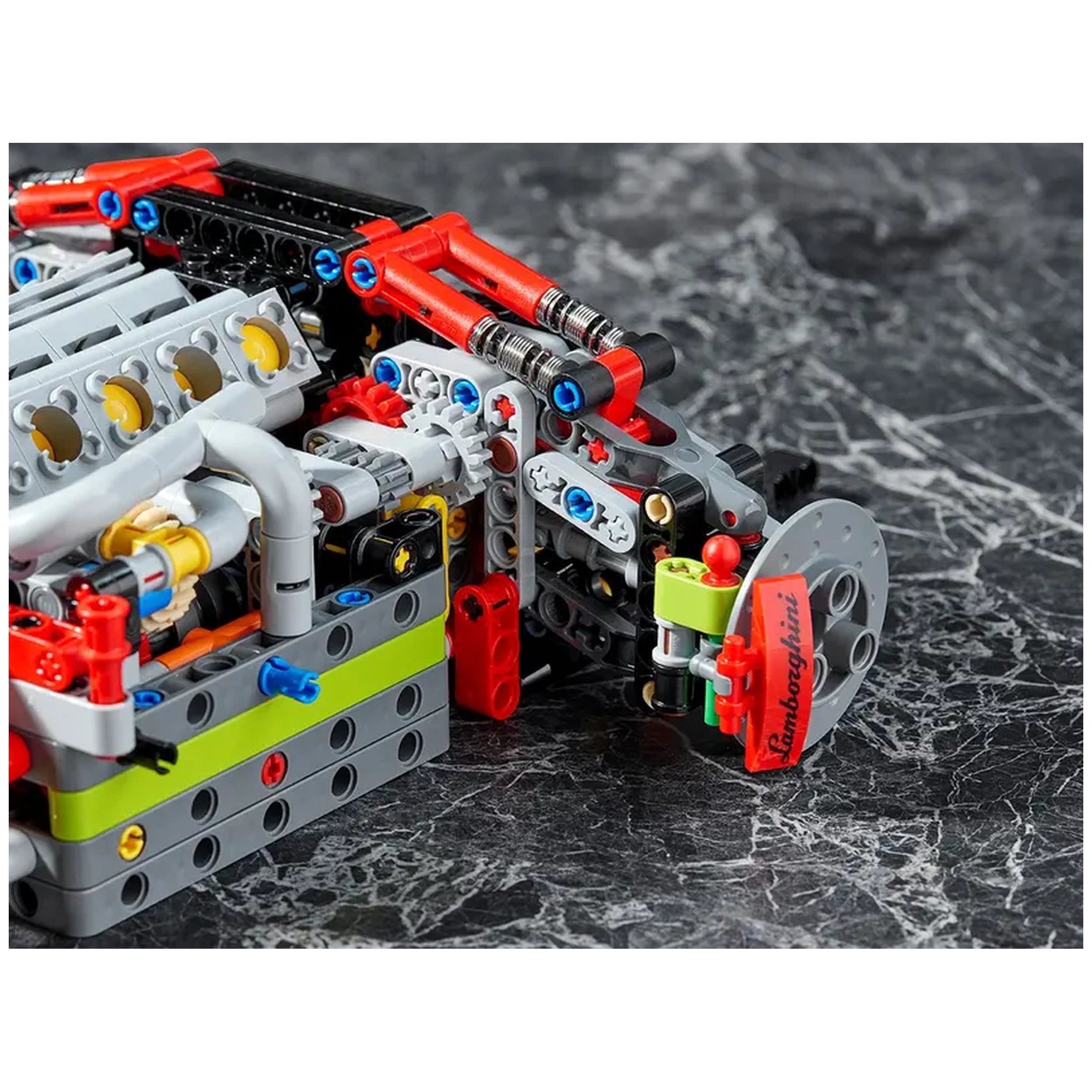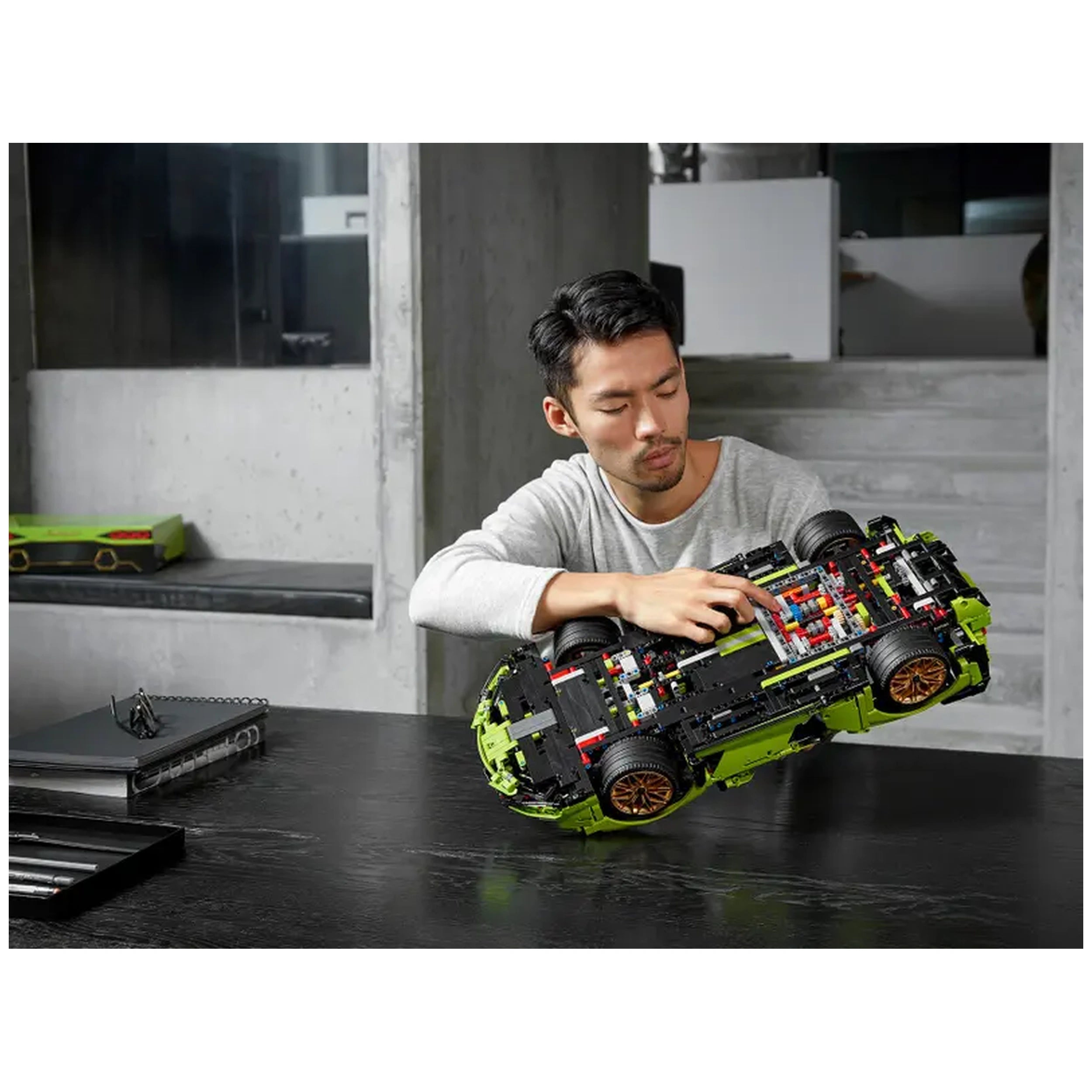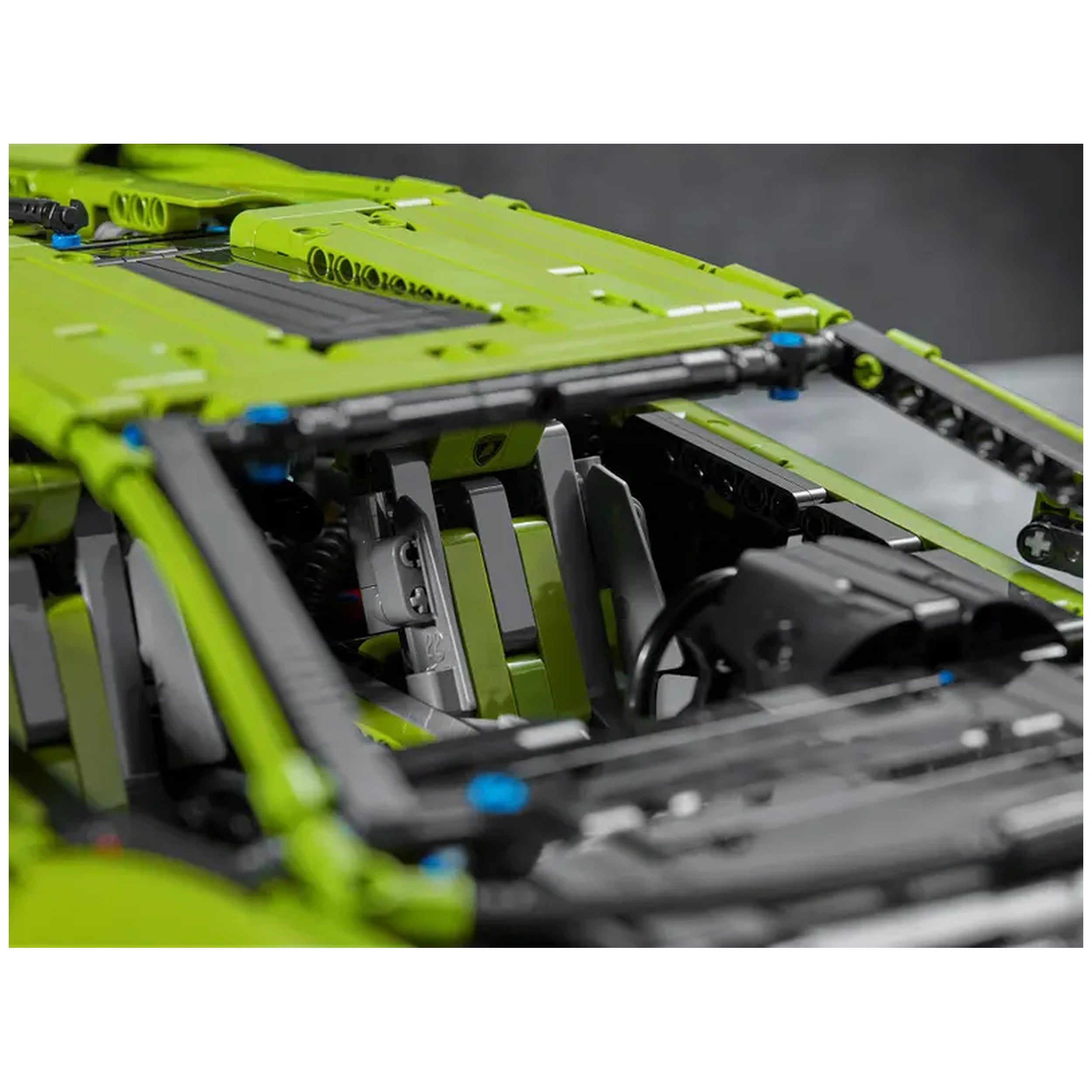 The LEGO® Technic™ Lamborghini Sián FKP 37 is not just a model; it is a celebration of automotive excellence. This construction set features an array of authentic details that mirror the real-life counterpart, including a sophisticated 8-speed transmission activated by a movable paddle gearshift. The intricately designed V12 engine boasts moving pistons, while the 4-wheel drive system enhances the model's realism. The scissor-opening doors add a touch of flair, allowing builders to appreciate the car's luxurious design from every angle.