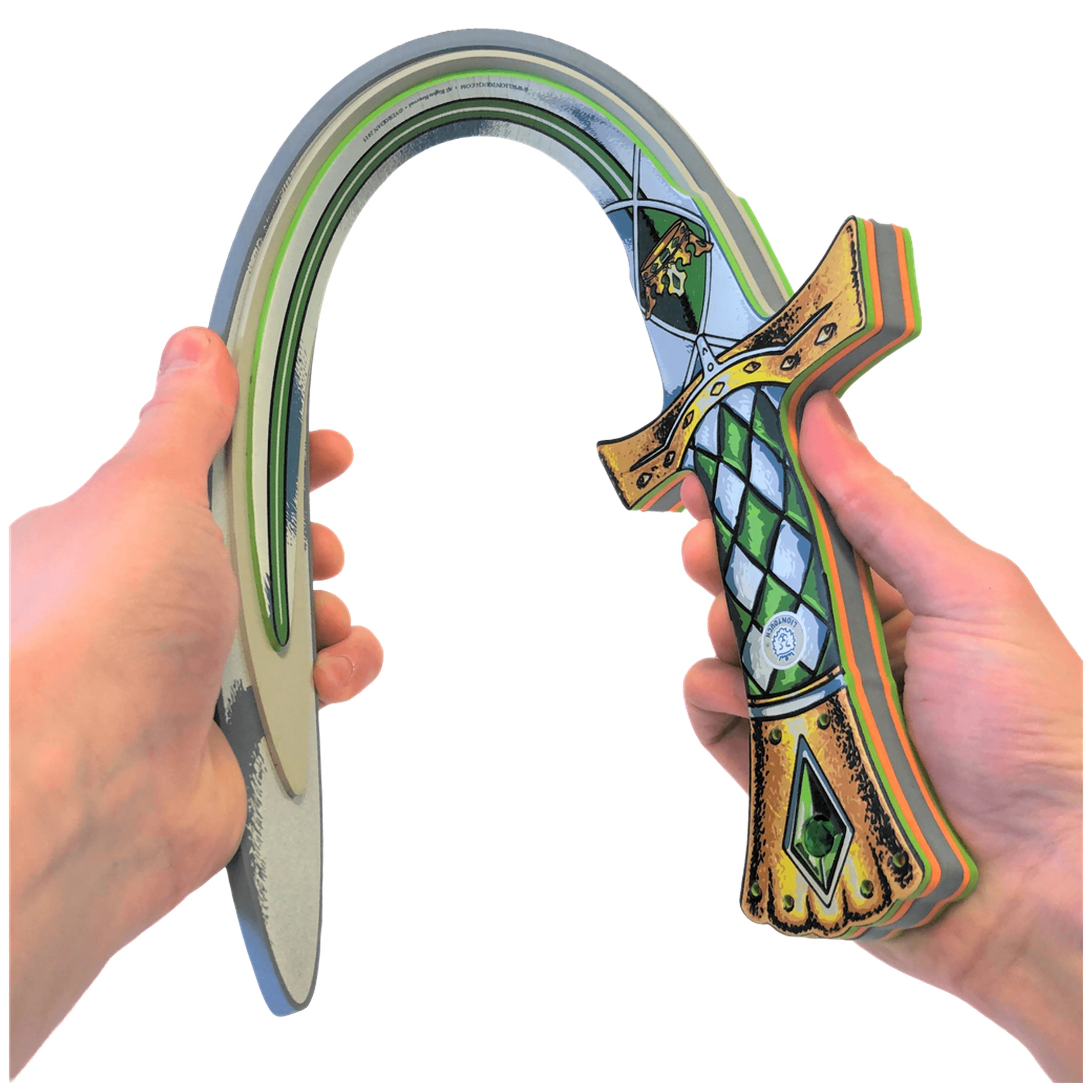 Crafted from EVA foam, the Kingmaker Sword is not only lightweight and flexible but also incredibly durable. This high-quality material is used in various applications, from shoe soles to yoga mats, showcasing its versatility. Our swords are designed without plastic reinforcements, ensuring that the foam remains intact and safe for play. With Liontouch, children can enjoy the thrill of fencing while parents can be assured of their safety.