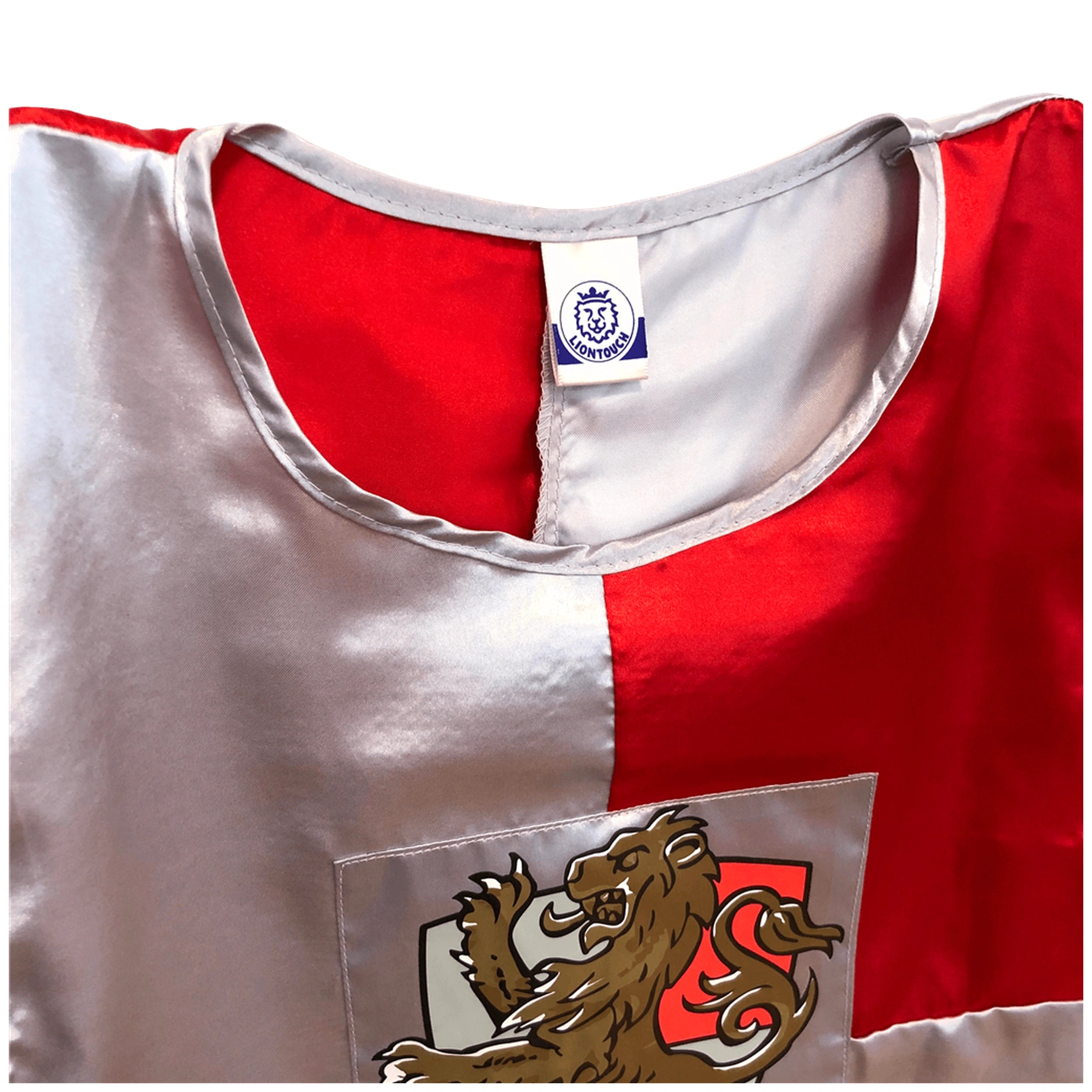 Introducing the Liontouch Prince Lionheart Cape, a captivating addition to the Prince Lionheart Line designed for imaginative play and role-playing adventures. This exquisite surcoat embodies the spirit of nobility and valor, allowing young dreamers to step into the shoes of a true prince. Adorned with the striking colors of the Lionheart banner and featuring the majestic golden lion motif, this cape serves as a powerful symbol of justice and honor. With the Prince Lionheart Cape, children can embrace their aspirations and embark on heroic quests, all while embodying the timeless values that have inspired generations.