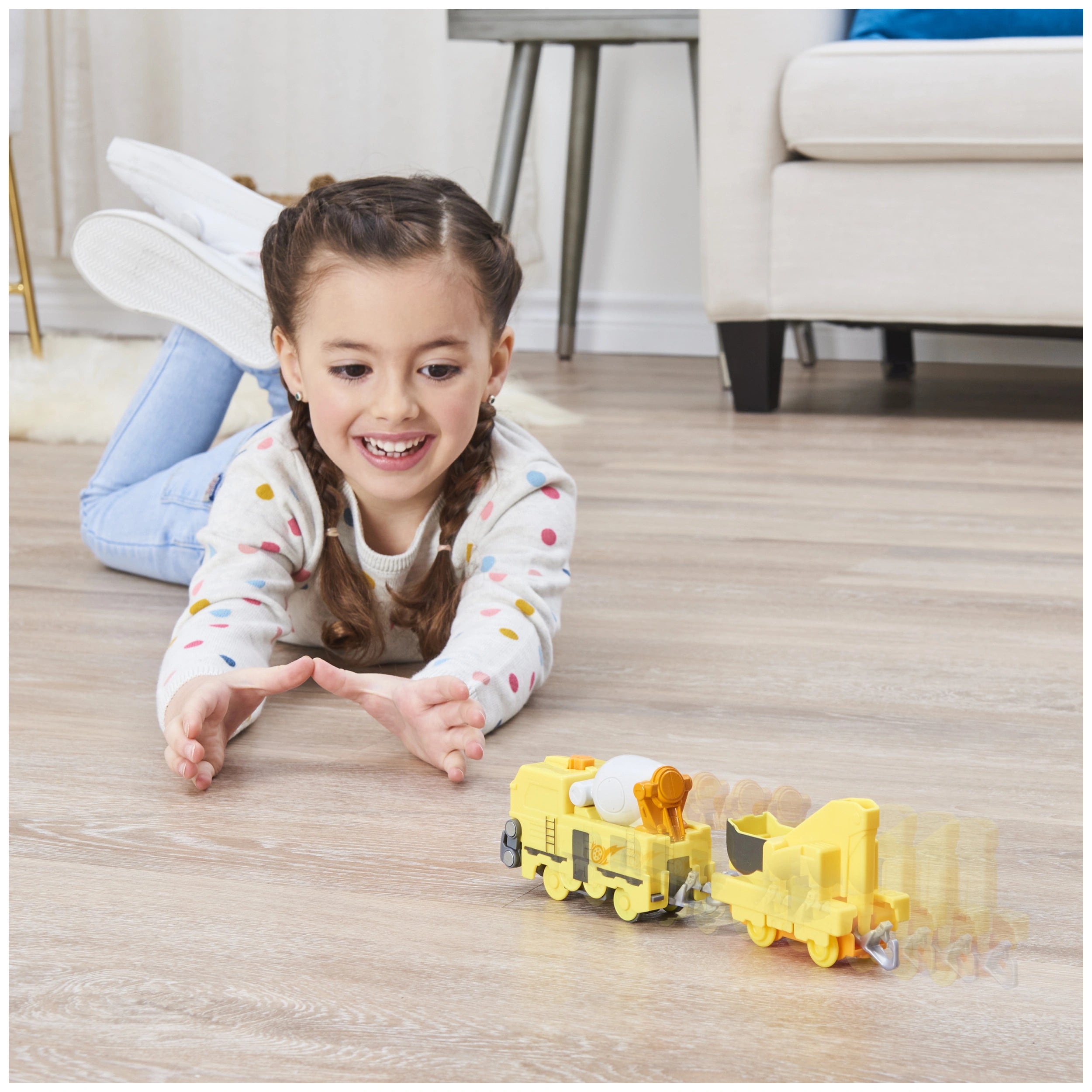 One of the standout features of this train is its working front loader scoop, which allows children to immerse themselves in creative play. Kids can lift the scoop up and down, pretending to dig and build around town, fostering their imagination and storytelling abilities. The included Excavator Car adds an extra layer of fun, as children can easily hook it onto the train cab and create their own unique missions. This combination of functionality and imaginative play makes the Mighty Express Motorized Train a must-have for any young builder.