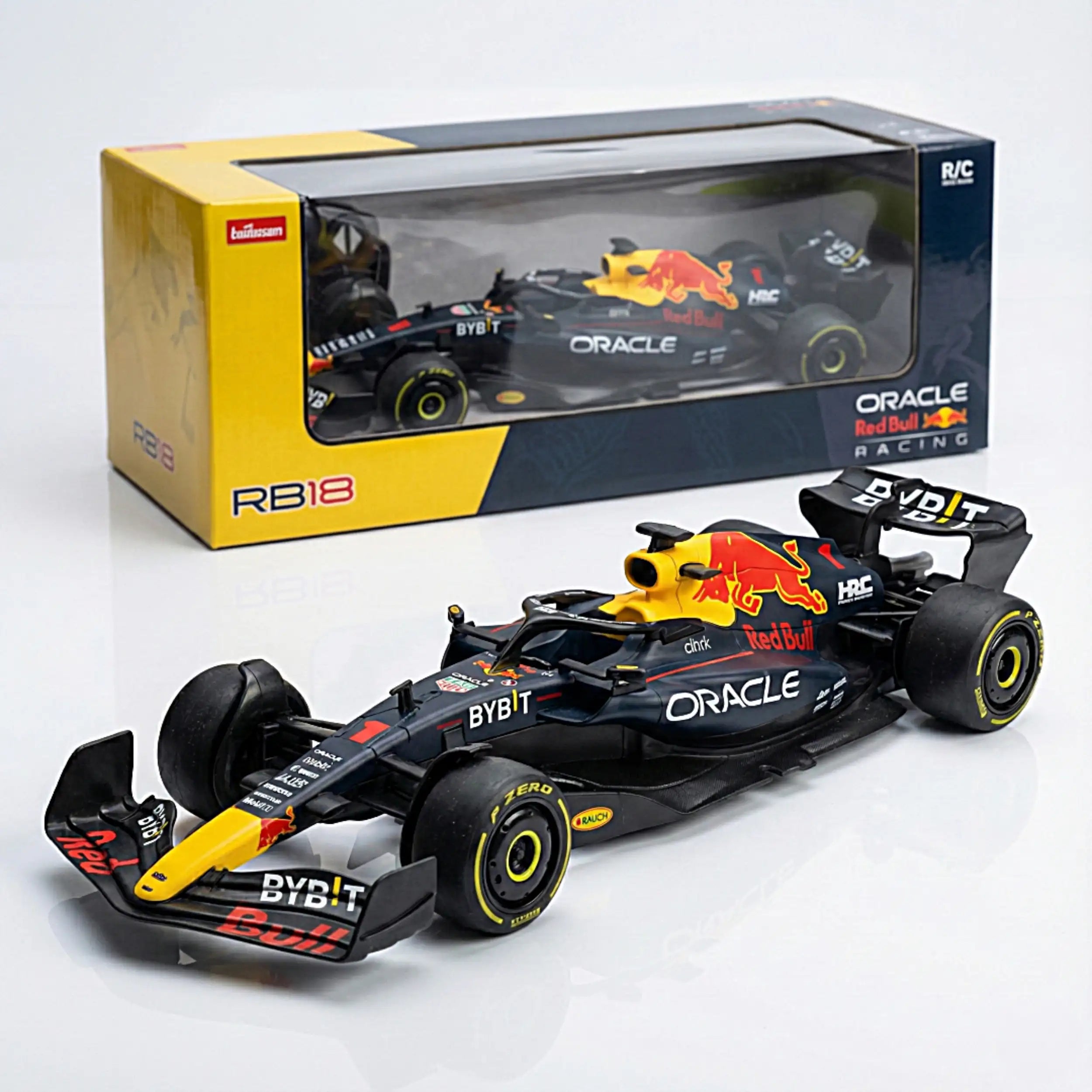 Introducing the Mondo - Oracle Red Bull F1 RB18 Radio-Controlled 2.4 GHz 1:18 Full Function Play Vehicle, a remarkable toy that brings the thrill of Formula 1 racing right into your home. Designed for young automotive enthusiasts, this meticulously crafted radio-controlled car captures the essence of the iconic Red Bull Racing team. With its impressive 1:18 scale, the RB18 offers an authentic racing experience that is both engaging and educational for children and teens alike.
