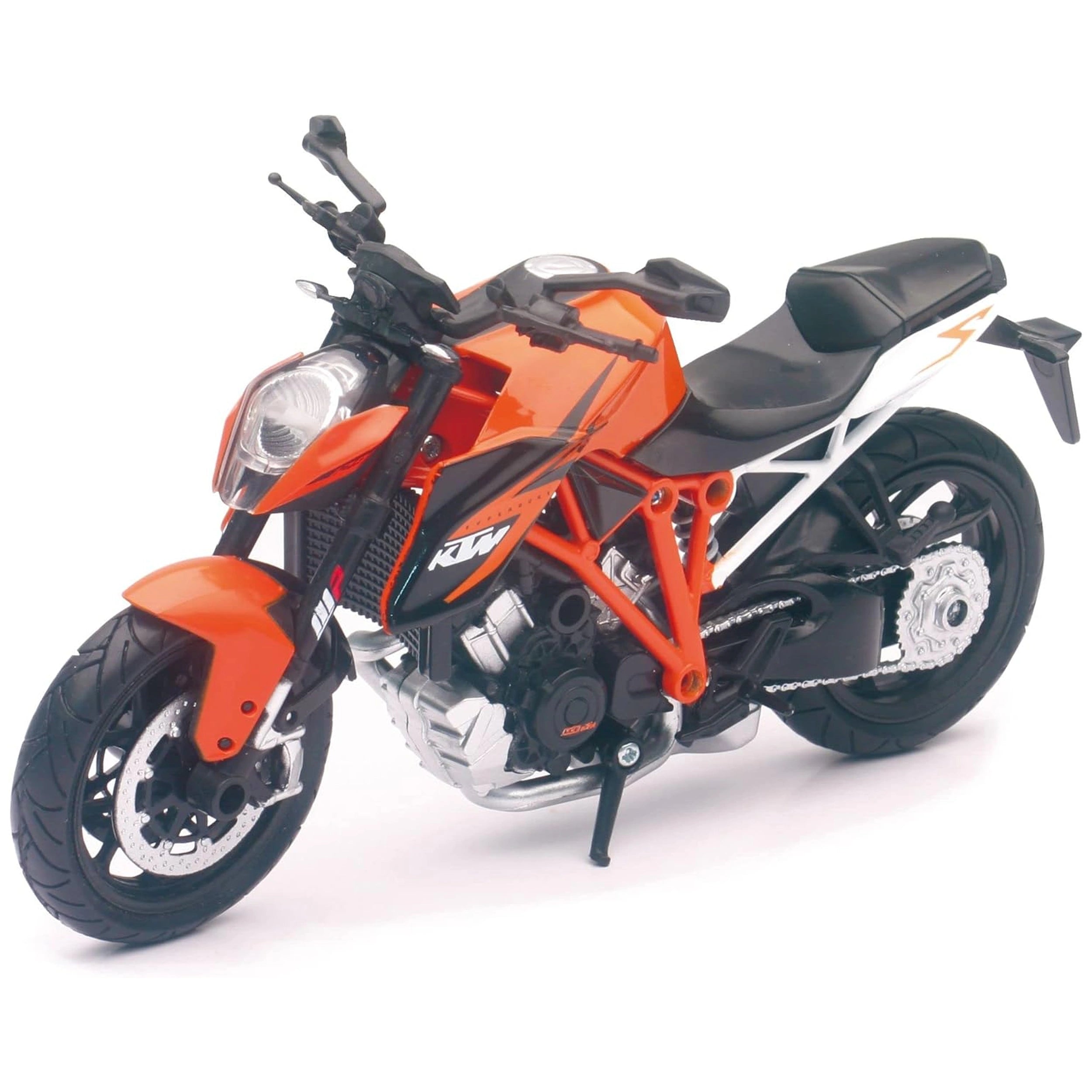 Introducing the NewRay KTM 1290 Super Duke R Die-Cast, a meticulously crafted 1:12 scale model that embodies the spirit of one of the most exhilarating naked bikes on the market. This stunning replica captures the essence of the KTM 1290 Super Duke R, renowned for its extreme performance, agility, and aggressive design. With its striking orange and black color scheme, characteristic of KTM's branding, this model is not just a toy but a collector's item that appeals to motorcycle enthusiasts of all ages.