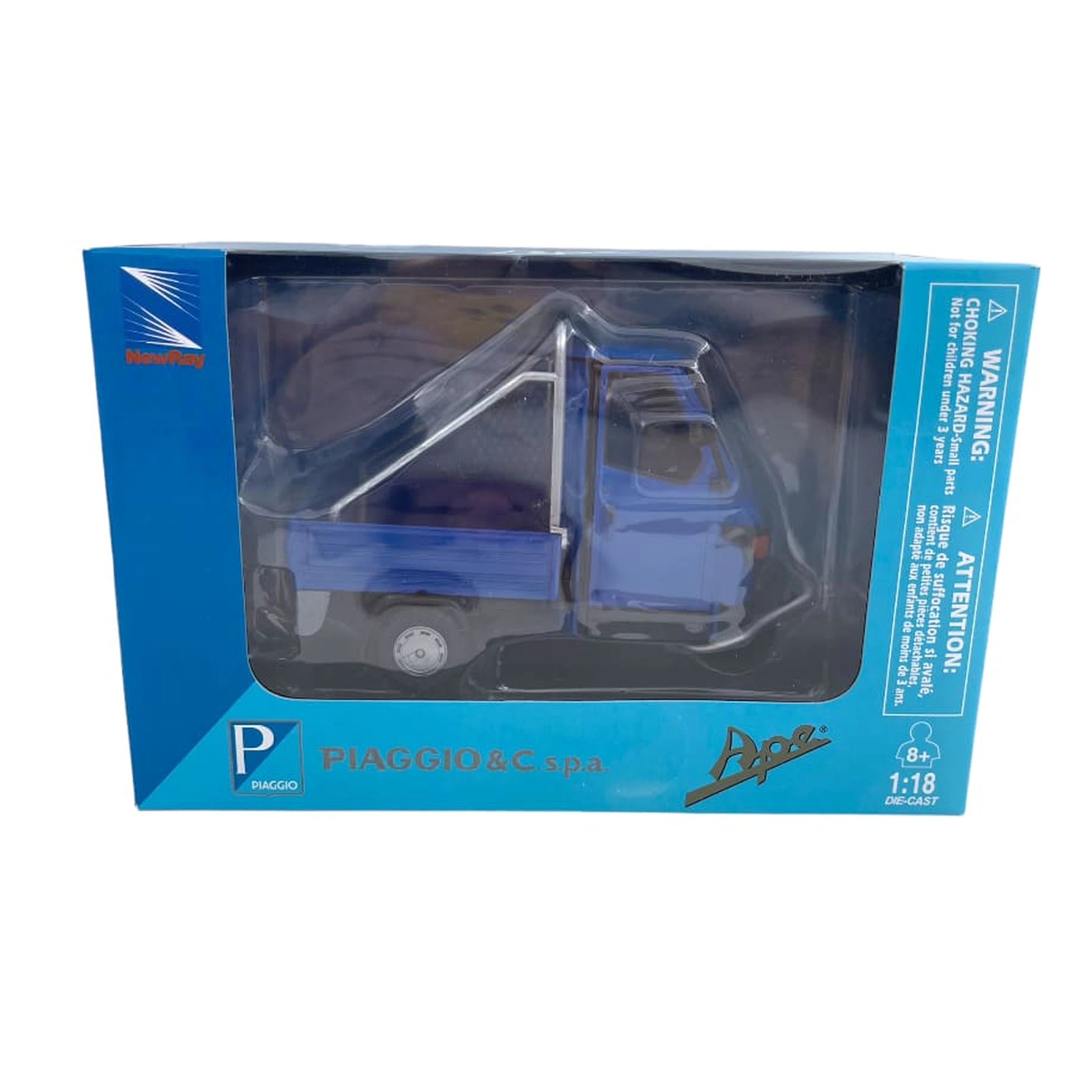 Safety and quality are paramount in the design of the New Ray Piaggio Ape 50 Cross Country. New Ray adheres to rigorous safety standards, ensuring that this model is safe for children while also being durable enough to withstand the rigors of play. The attention to detail and quality materials used in its construction reflect New Ray's commitment to providing products that are both enjoyable and reliable. Parents can have peace of mind knowing that their children are playing with a safe and well-made toy.