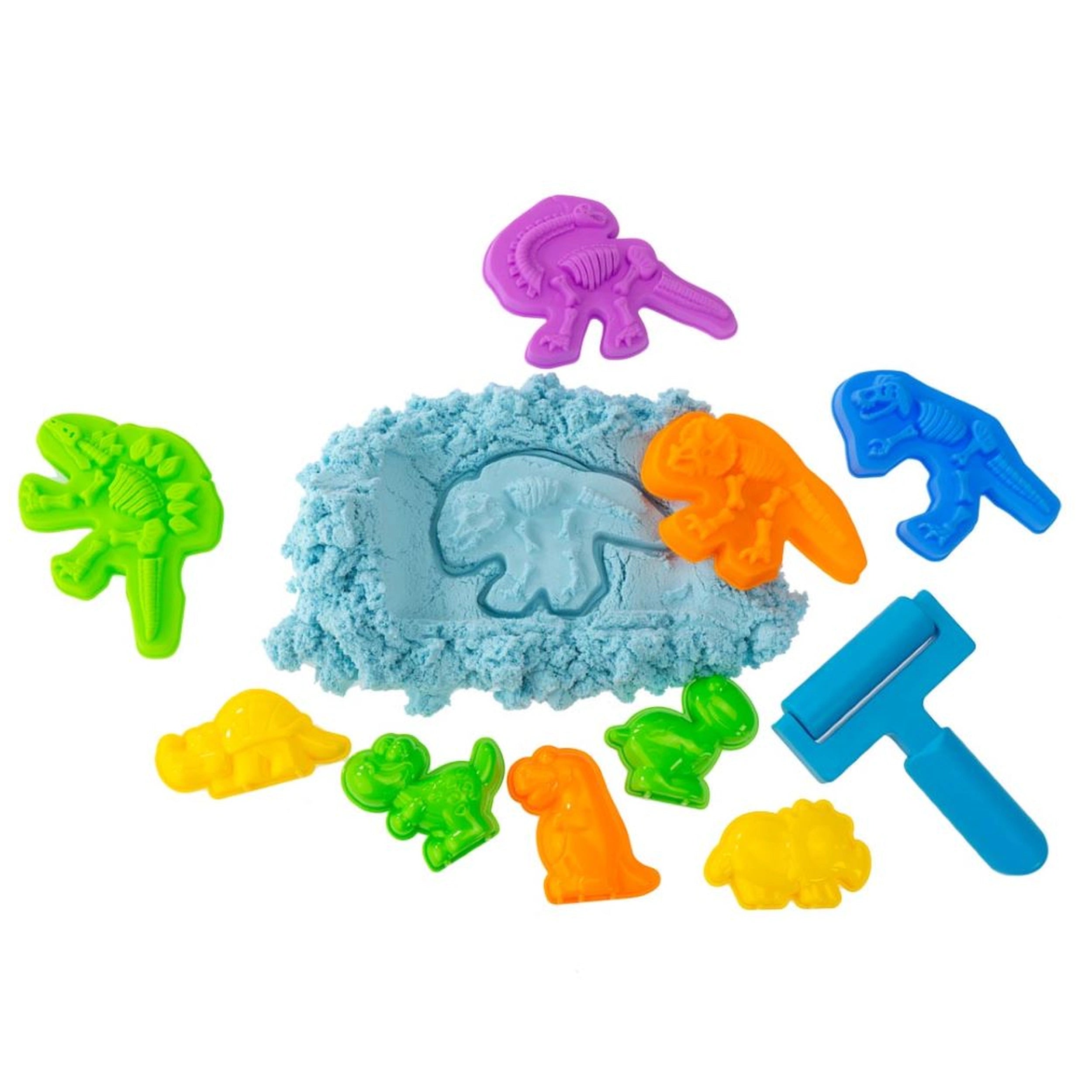 The Spongy Sand Dino Set features five bags of colorful Spongy Sand, each weighing 200 grams, providing ample material for endless creative possibilities. This malleable sand behaves like dough, allowing children to easily mold and shape it into various forms. The set includes four fossil molds and five dinosaur shapes, enabling kids to create their own dinosaur-themed scenes and excavations. Whether they are digging for fossils or crafting their favorite dinosaurs, children will be captivated by the interactive nature of this product.