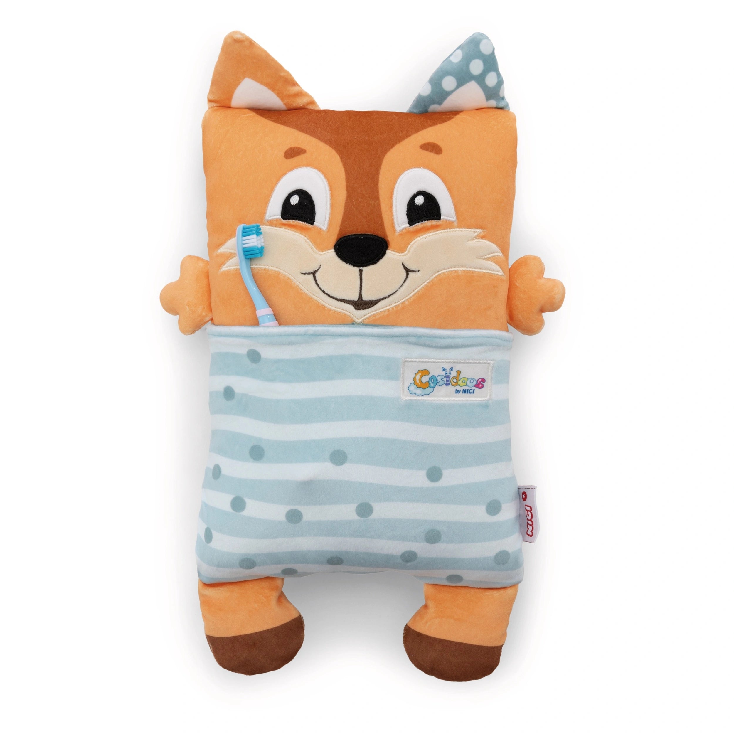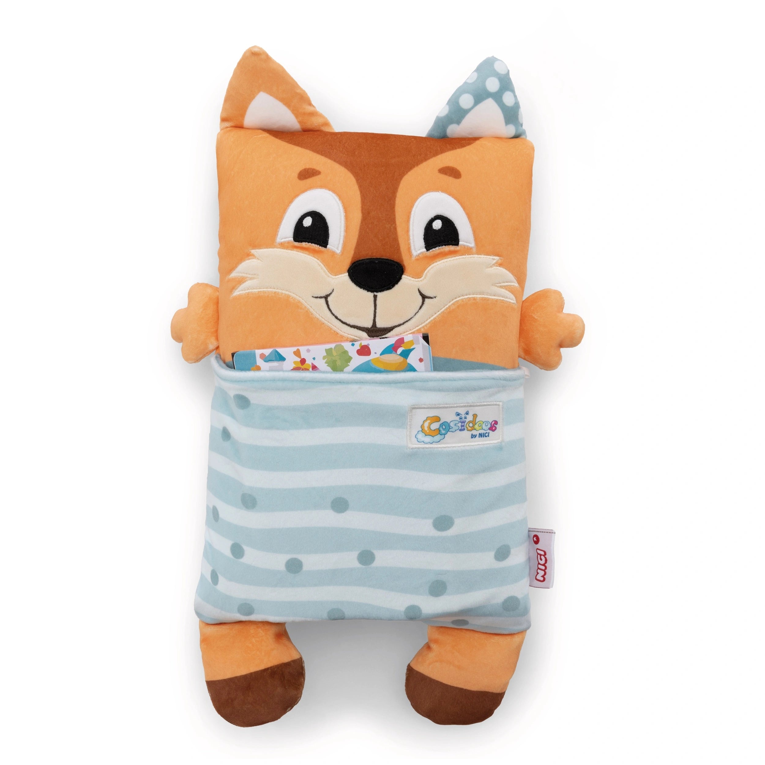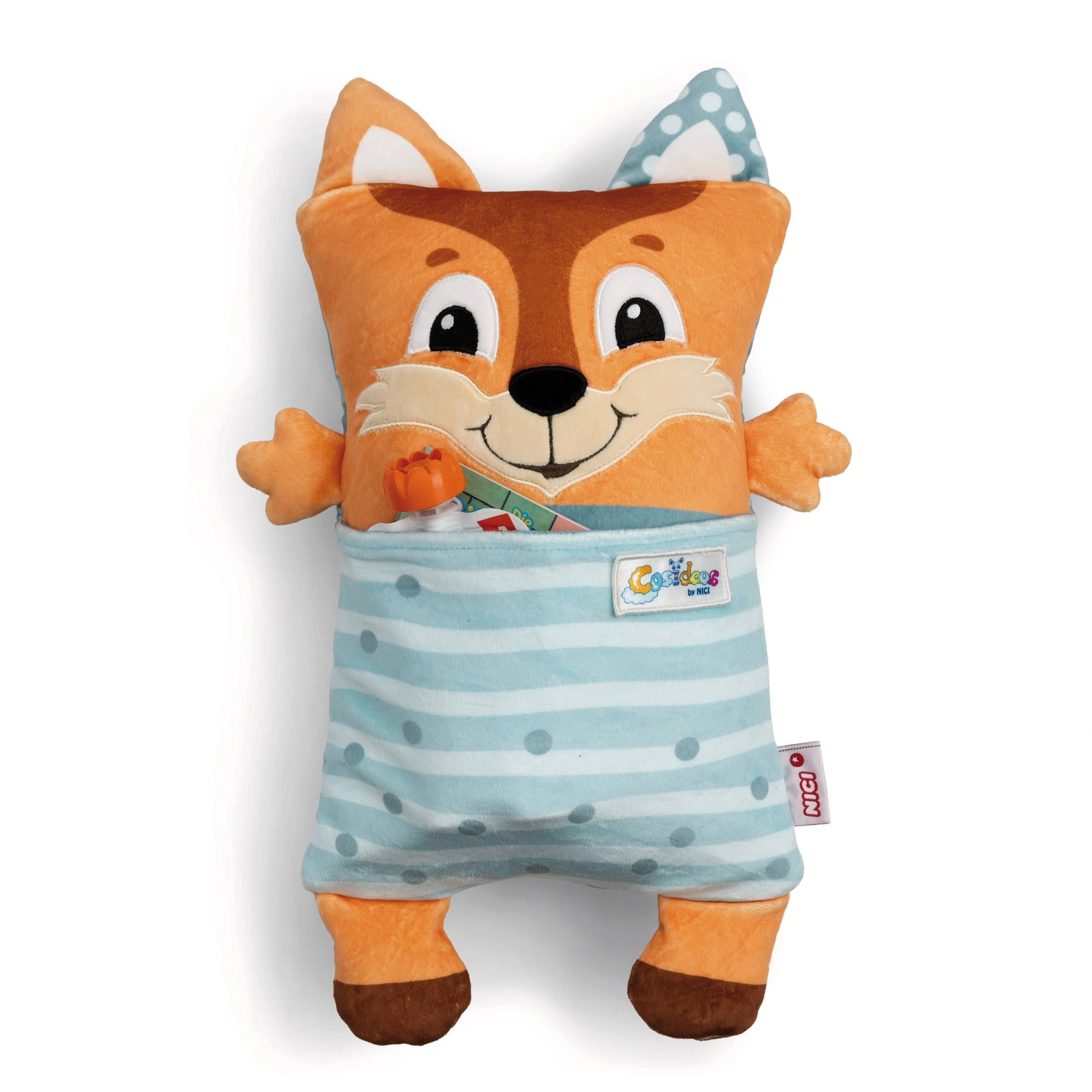 Introducing the NICI Soft Toy Fox with Reversible Function, a delightful companion designed to bring joy and comfort to children of all ages. This charming Cosidoos fox is not just an ordinary soft toy; it is a versatile friend that transforms effortlessly from a playful daytime buddy into a soothing nighttime companion. Crafted with high-quality, super-soft NICI plush, this fox is perfect for snuggling, making it an essential addition to any child's toy collection.