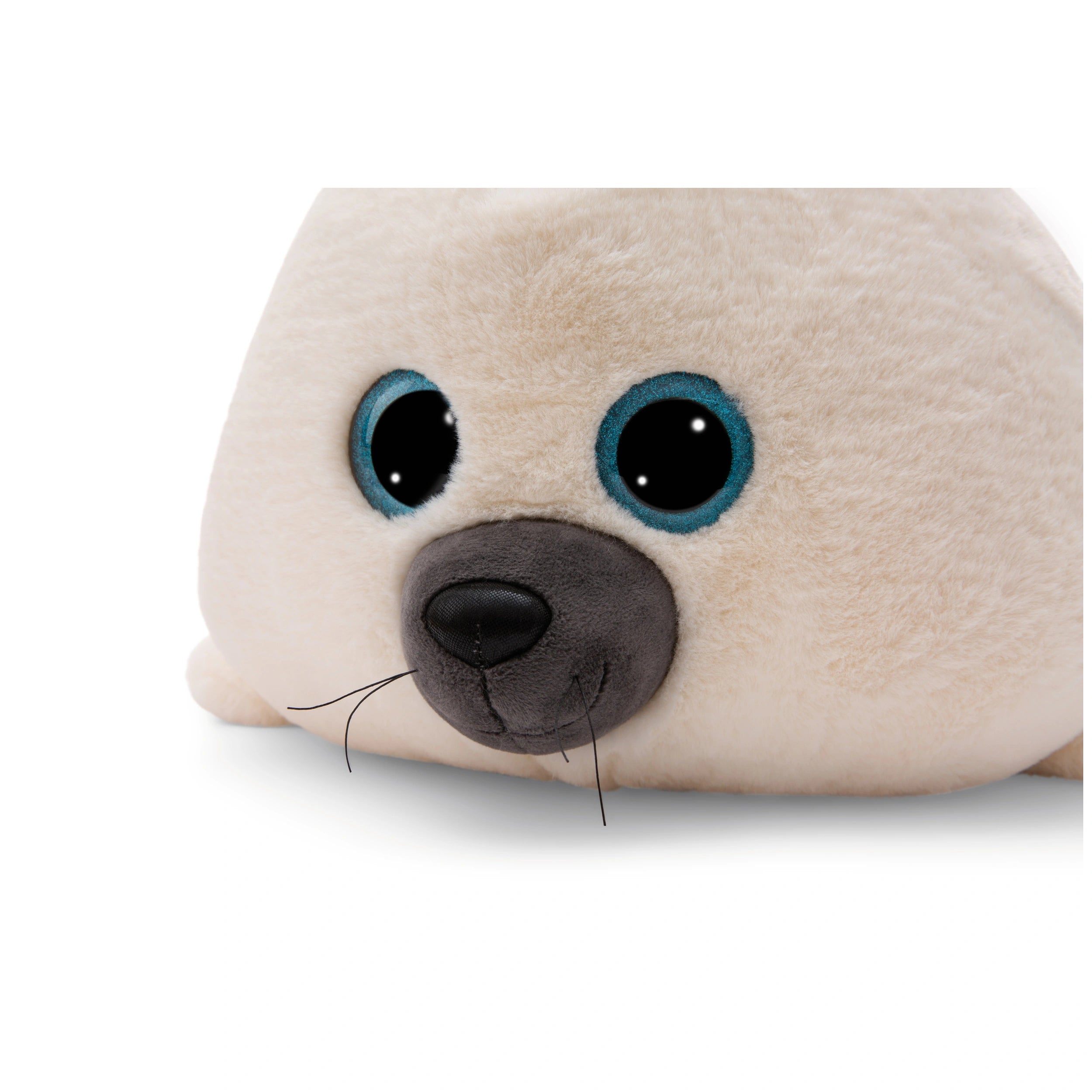The Boubelle seal features a cream-colored body that is not only visually appealing but also designed for stability with its lateral flippers. This thoughtful design allows for easy positioning, whether it's sitting on a bed, a sofa, or being held during a cozy cuddle session. The plush toy's big blue glitter eyes and adorable facial expression are sure to capture the hearts of both young children and adults alike, making it a beloved item for seal enthusiasts and NICI collectors.