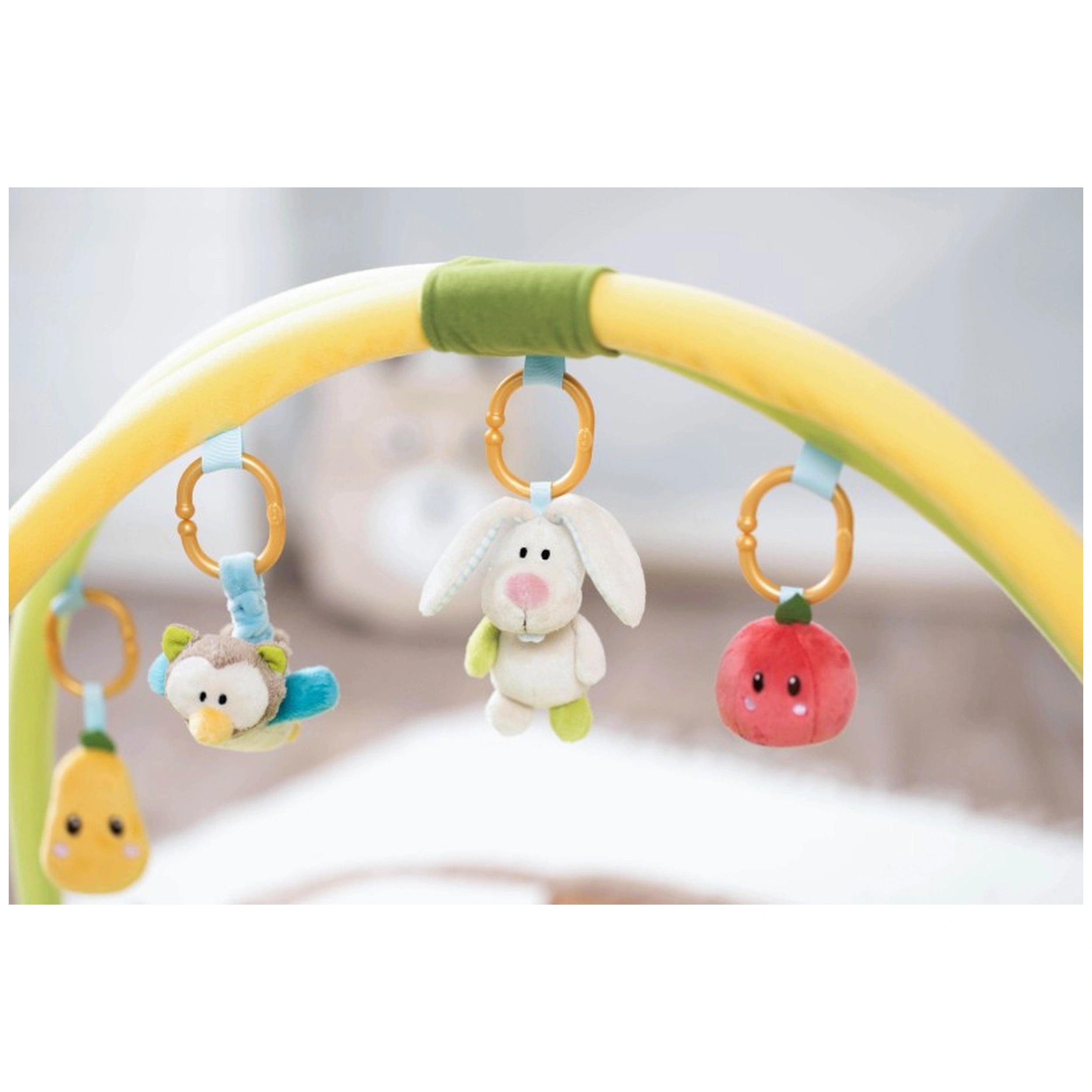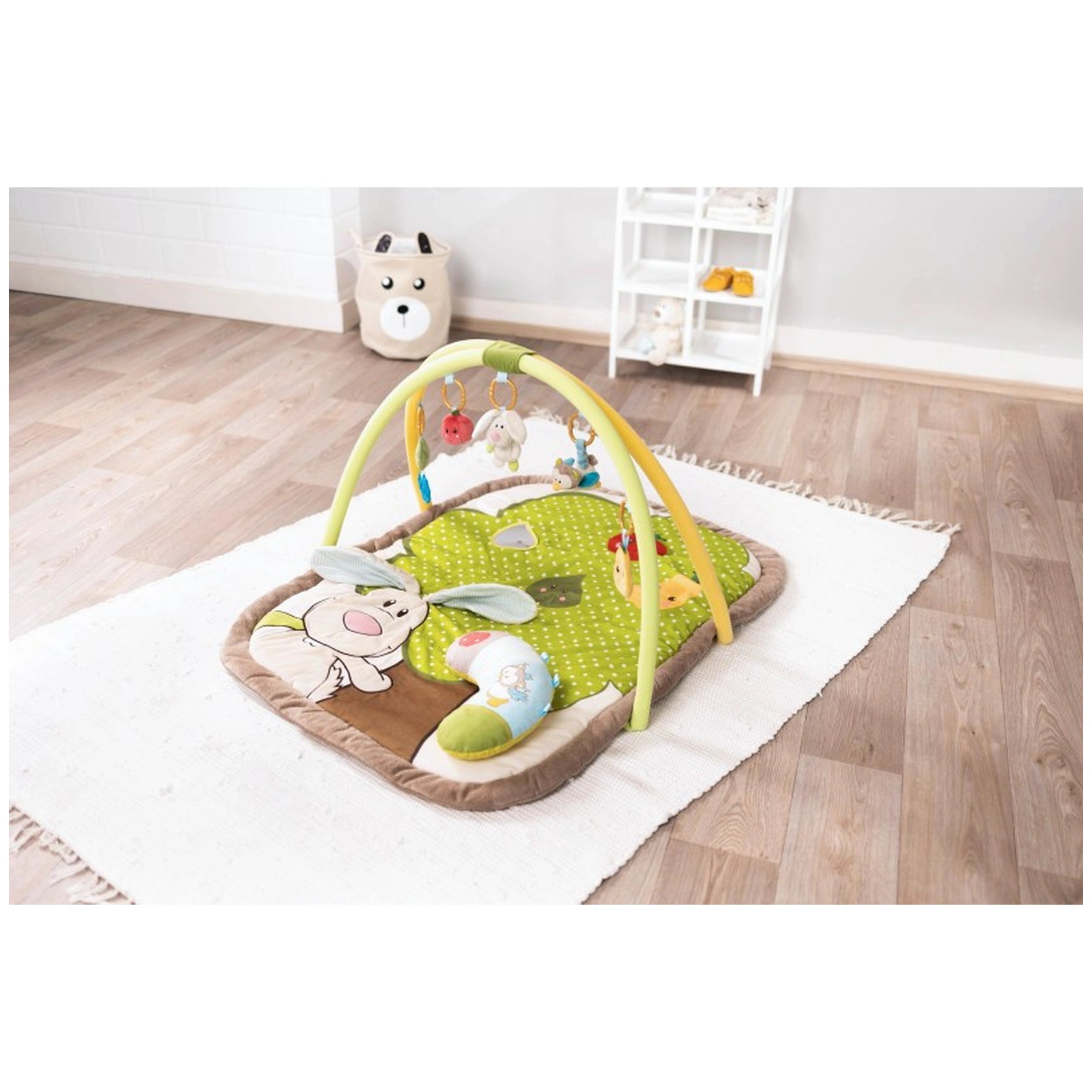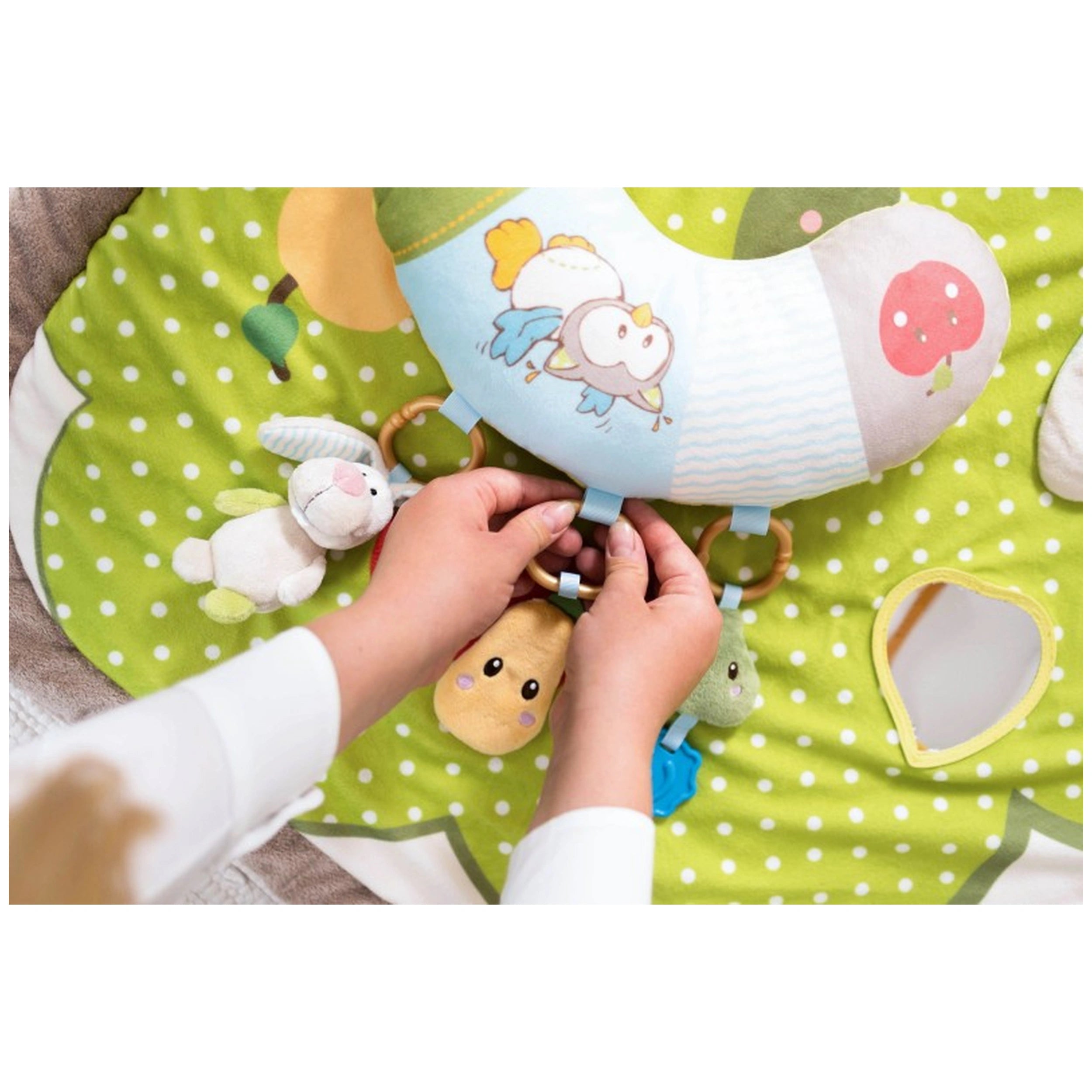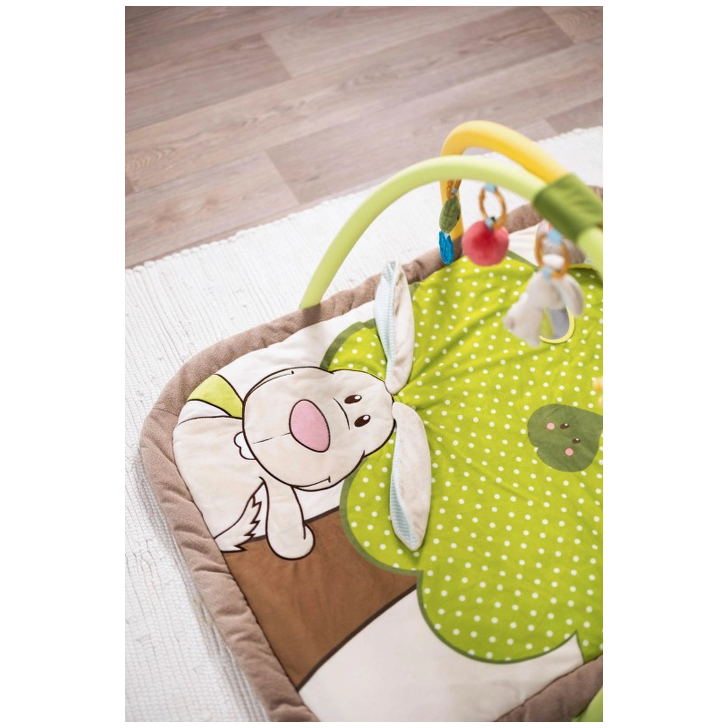 Introducing the NICI - My First NICI 3-D Activity Quilt featuring a delightful Rabbit and Owl design, complete with a play cushion and a convenient carrying bag. This beautifully crafted play mat measures 80 x 100 cm, making it the perfect size for infants to explore and enjoy. Designed with both aesthetics and functionality in mind, this activity quilt is an essential addition to any nursery, providing a safe and engaging environment for your little one.