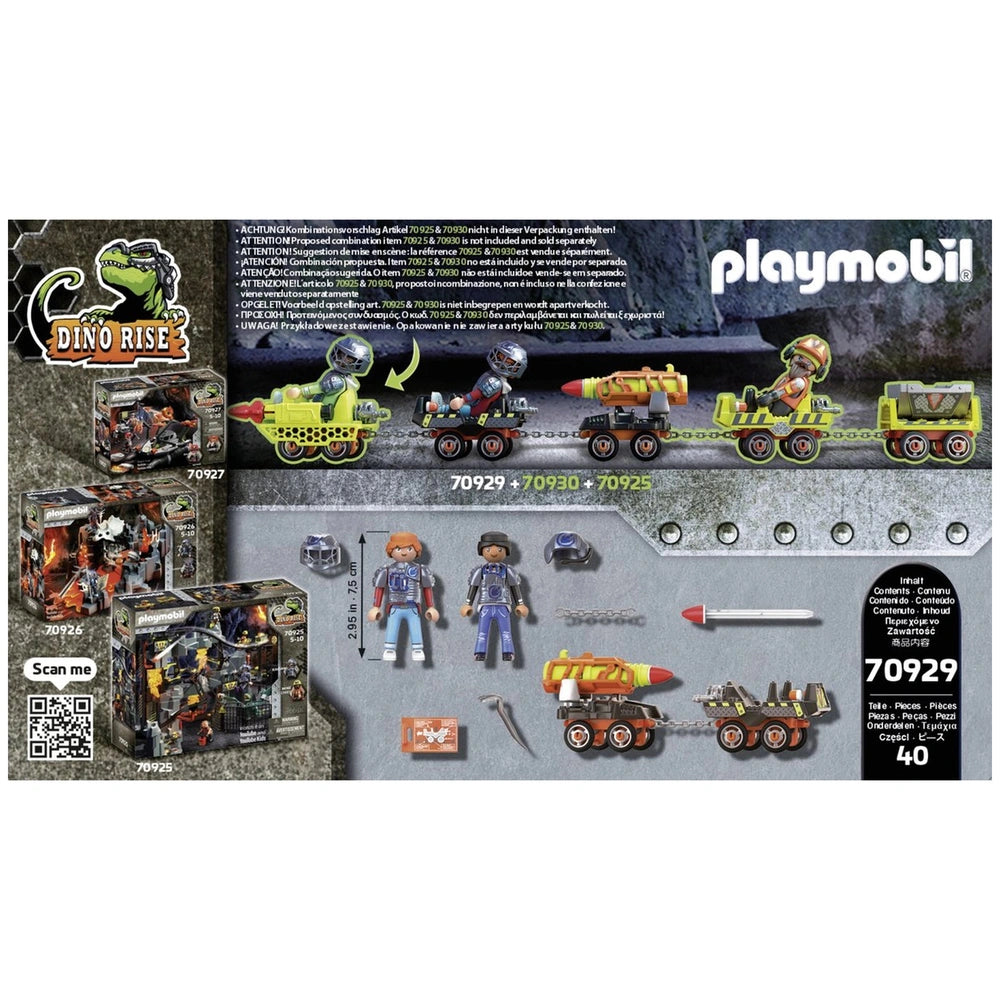 Introducing the Playmobil Dino Rise Dino Mine Rocket Kart - 70929, an exhilarating addition to the Playmobil Dino Rise series that promises adventure and excitement for young explorers. This dynamic playset features Ayla and Samu, two brave members of Team Dino Rise, embarking on thrilling missions in their specially designed Mine Cruiser. With its vibrant colors and intricate details, this set captures the imagination and encourages creative storytelling.