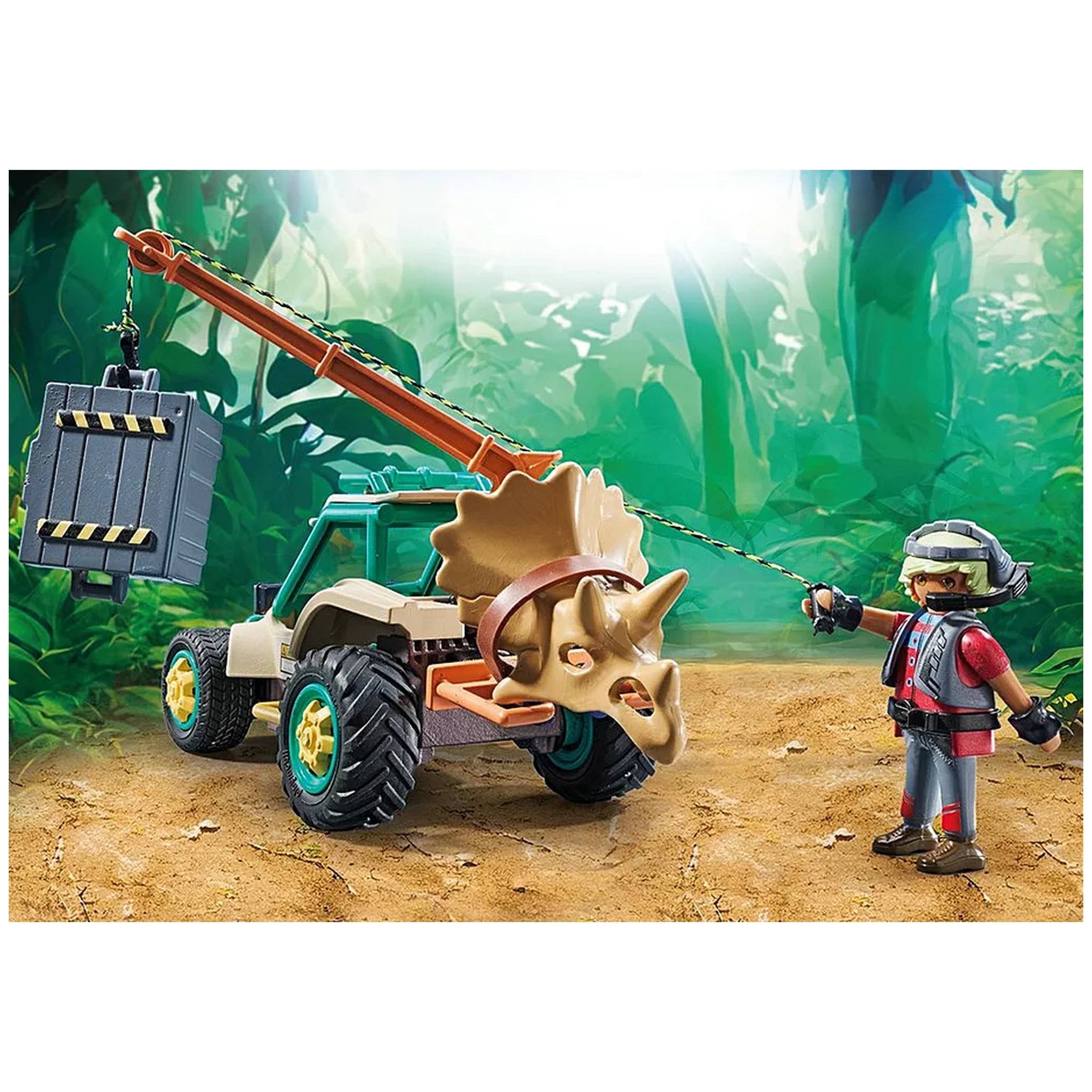 As children engage with the playset, they will master the expedition challenge by utilizing the swiveling crane to maneuver the crate filled with tools and accessories. Each interactive feature is designed to spark creativity and encourage problem-solving skills, making playtime both entertaining and educational. The dynamic elements of the set invite kids to immerse themselves in the role of a daring researcher, navigating the challenges of the prehistoric landscape.
