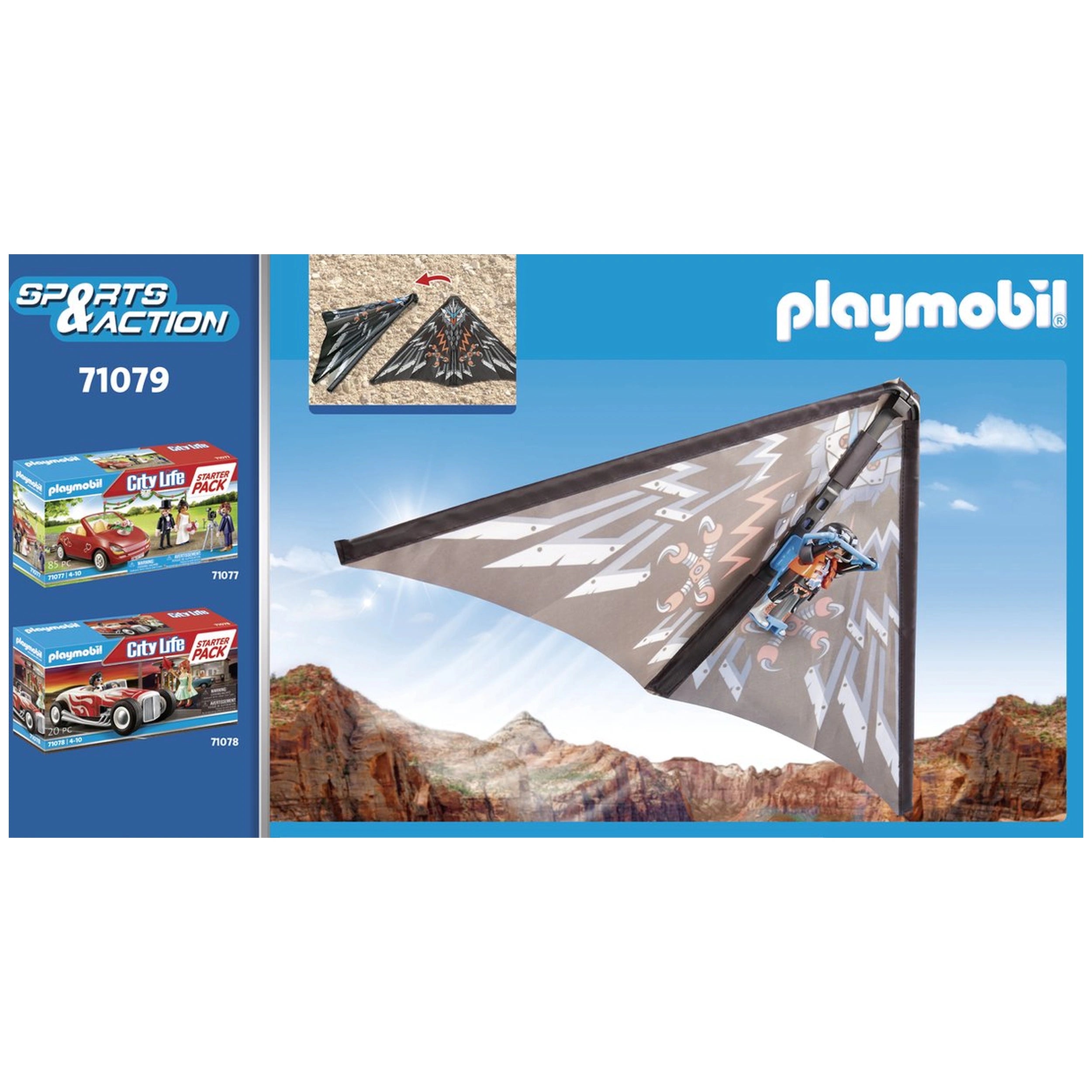 In conclusion, the Playmobil Starter Pack Hang Glider - 71079 is an exceptional choice for children who love adventure and imaginative play. With its engaging features, high-quality design, and compatibility with other sets, it offers endless opportunities for exploration and creativity. Don’t miss out on the chance to elevate your child's playtime experience—order the Playmobil Starter Pack Hang Glider today and watch their imagination take flight!