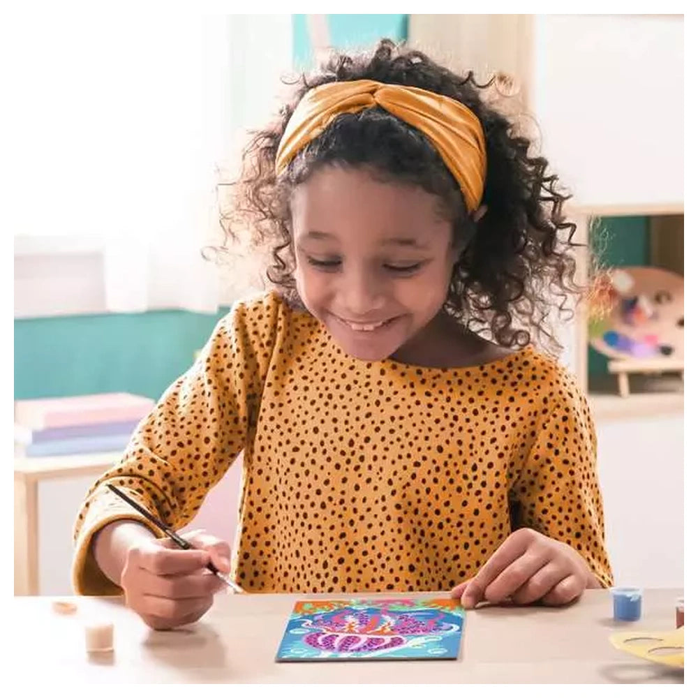 The Sparkling Jellyfish set features the innovative Colored Borders system, where pre-colored lines mark each area to help children easily identify the correct sections and choose the right colors. The included small brush is ergonomically tailored for little hands, allowing for the precision needed to bring the jellyfish to life. Measuring 14 x 19 cm, the high-quality numbered board acts as the perfect canvas for a young artist’s first steps into the world of painting.