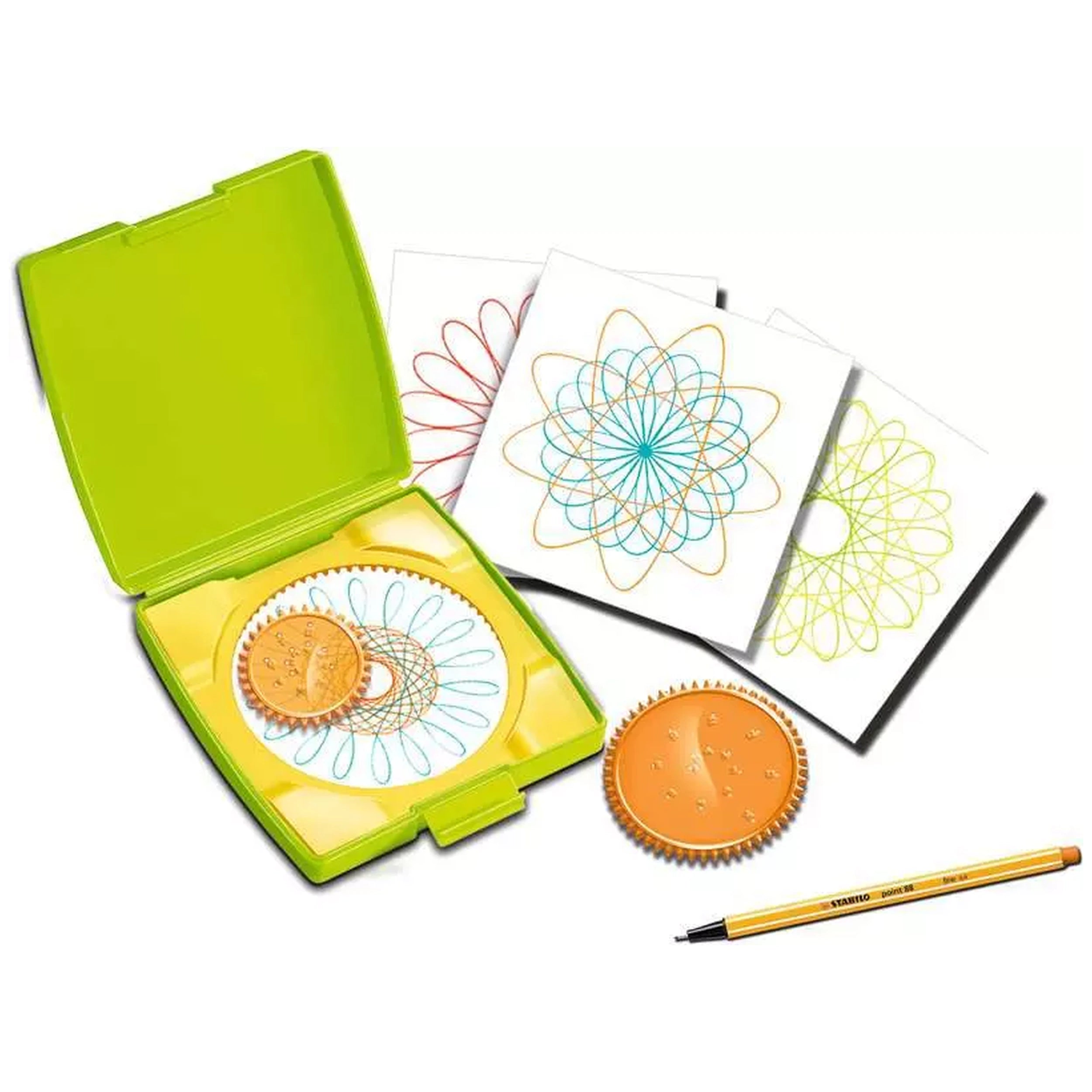 Using the Mini Spiral Designer is a straightforward and enjoyable process. Simply place a sheet of paper in the box, position the frame on top, and insert the gears. Children can then guide a pen through one of the holes and start turning the gears to create mesmerizing spiral patterns. The ease of use encourages kids to explore their creativity, combining colors and gear configurations to produce an endless array of designs.