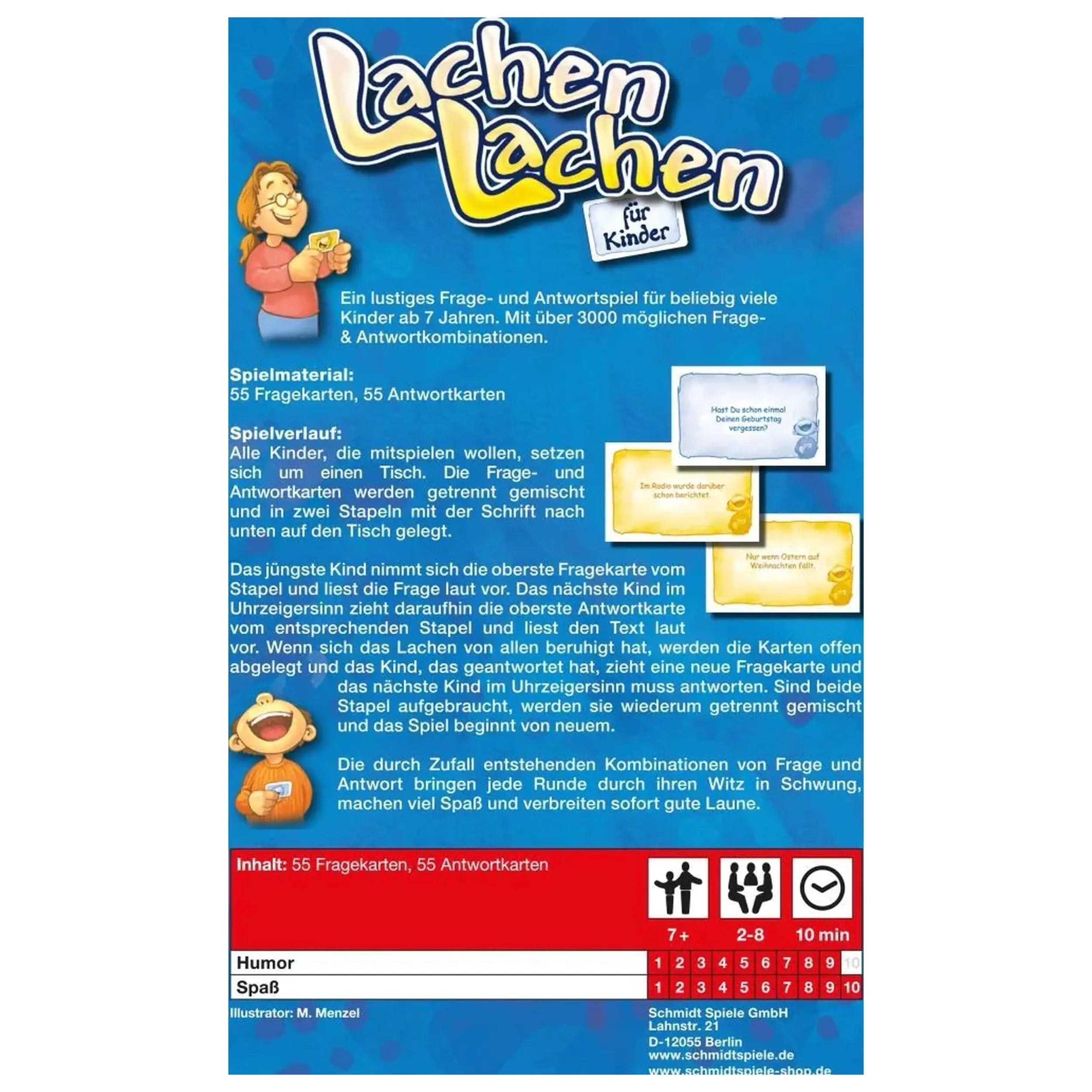 Introducing Schmidt Spiele's "Laughter Laughter" – the ultimate children's travel board game designed to spark joy and laughter among young players. This engaging game is perfect for family outings, road trips, or any gathering where children can come together to share fun and silly moments. With its unique premise, "Laughter Laughter" encourages creativity and humor, making it a delightful addition to any child's game collection.