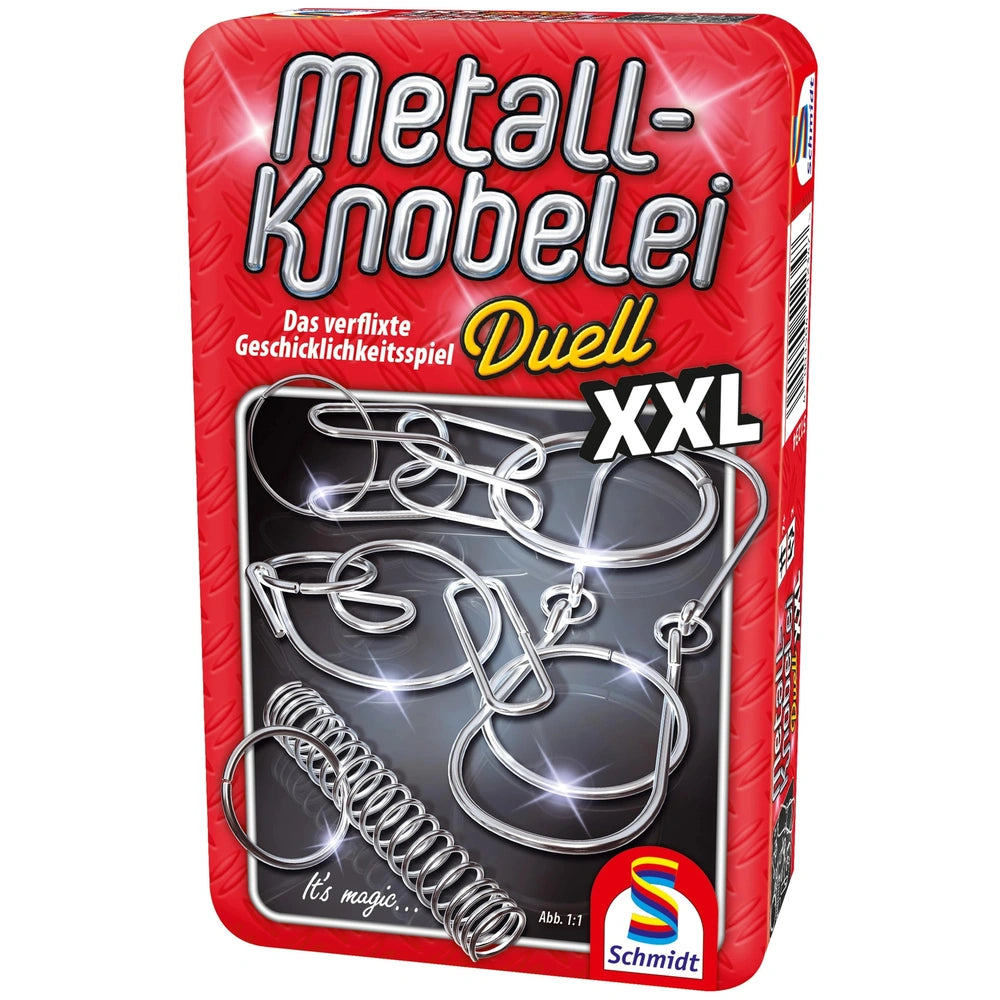 Crafted by Schmidt Spiele, a brand synonymous with quality and innovation in the gaming industry, the "Metall-Knobelei Duell XXL" set is built to last. The durable metal construction ensures that these puzzles can withstand repeated use, allowing you to enjoy them for years to come. Designed to stimulate cognitive abilities, this set challenges your problem-solving skills while providing a rewarding experience. Its compact packaging makes it easy to store or take on the go, ensuring that you can enjoy a mental workout wherever you are.