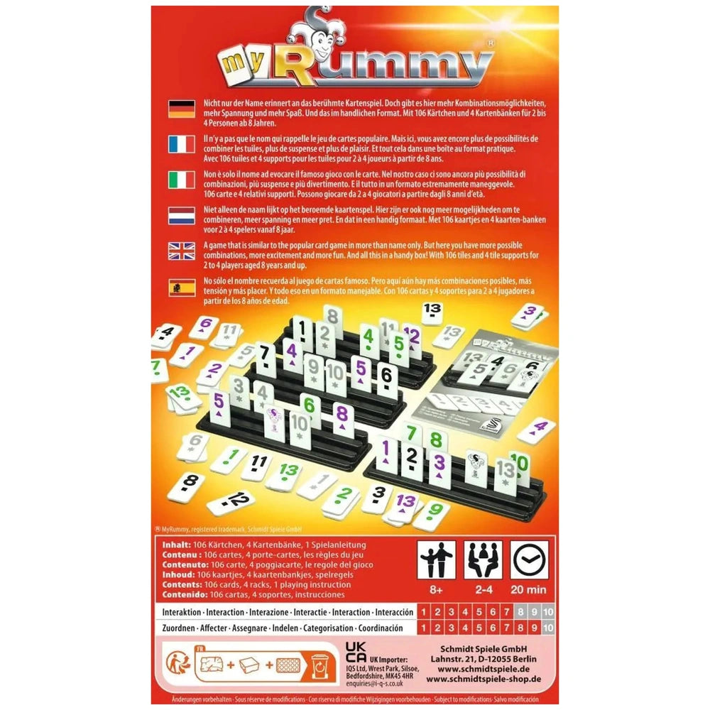 Introducing Schmidt Spiele - MyRummy, an innovative twist on the classic card game that promises to elevate your family game nights. This engaging game is designed to bring together players of all ages, fostering interaction and strategic thinking in a fun and dynamic environment. With its compact format, MyRummy is perfect for both at-home play and on-the-go entertainment, making it an essential addition to your family game collection.