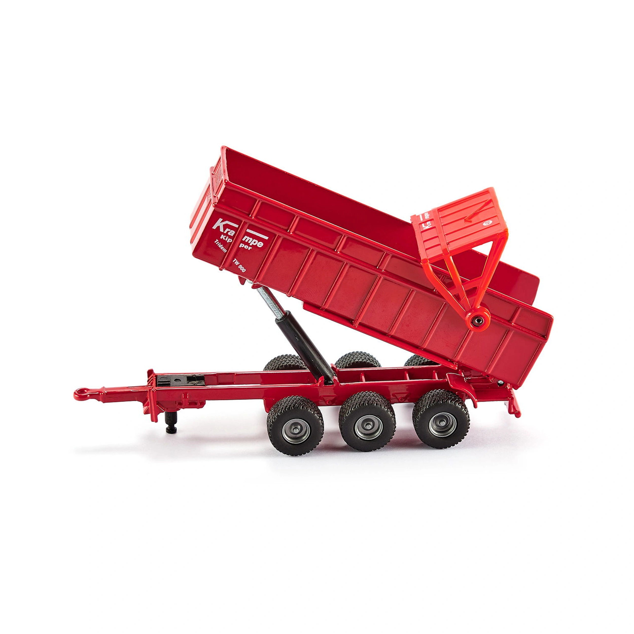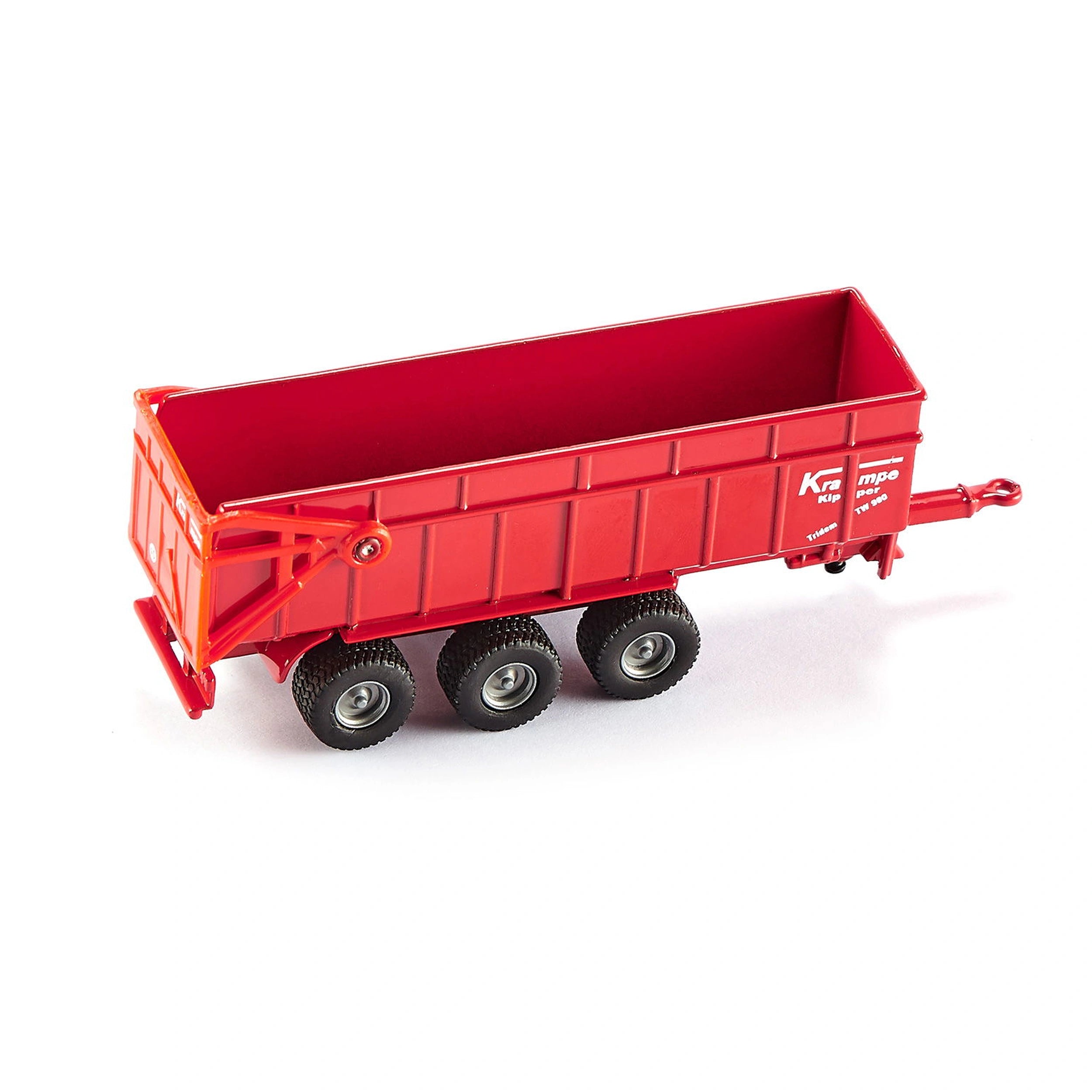 The Krampe three-axle tipper is constructed primarily from metal, ensuring durability and longevity. This choice of materials sets a new quality standard for 1:87 scale models, making it a reliable option for both play and display. The attention to detail is evident in the small components that complement the overall design, making this model a true representation of agricultural machinery.