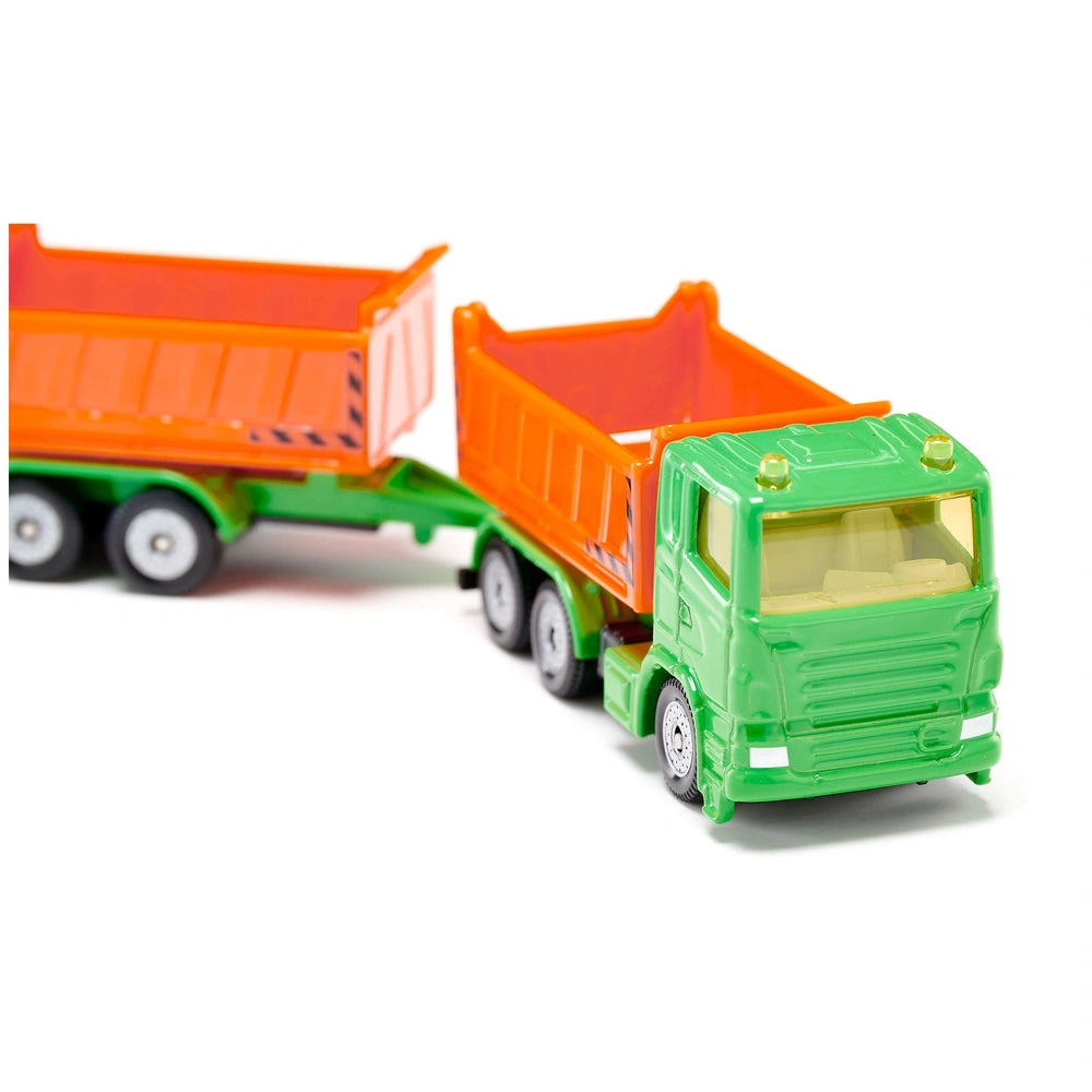 Introducing the Siku Truck with Dumper Body and Tipping Trailer, a versatile play vehicle designed to inspire creativity and imaginative play in children. This meticulously crafted toy is not just a truck; it is a miniature representation of the heavy-duty vehicles found on real construction sites. With its robust design and functional features, this truck is perfect for young builders eager to engage in construction-themed play.