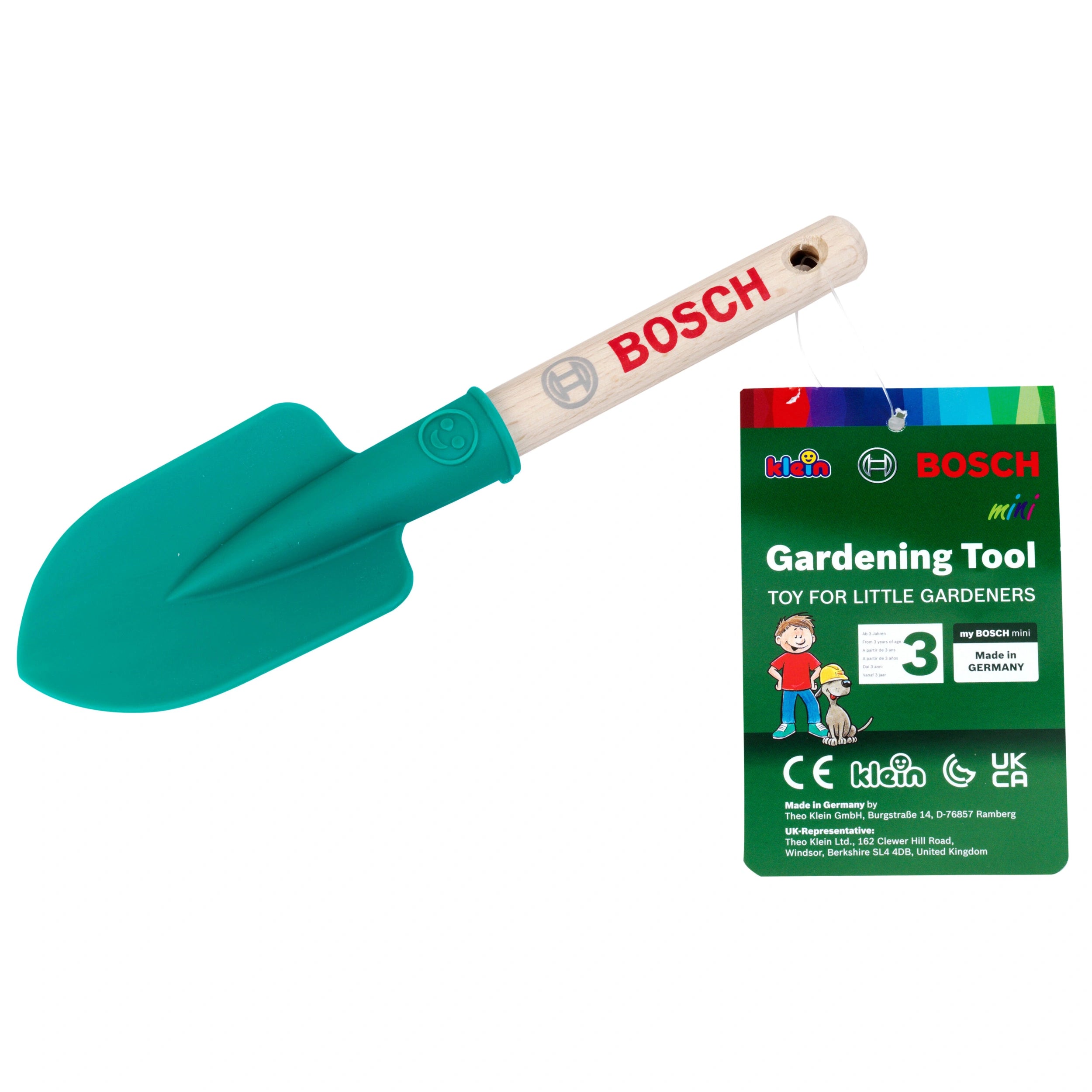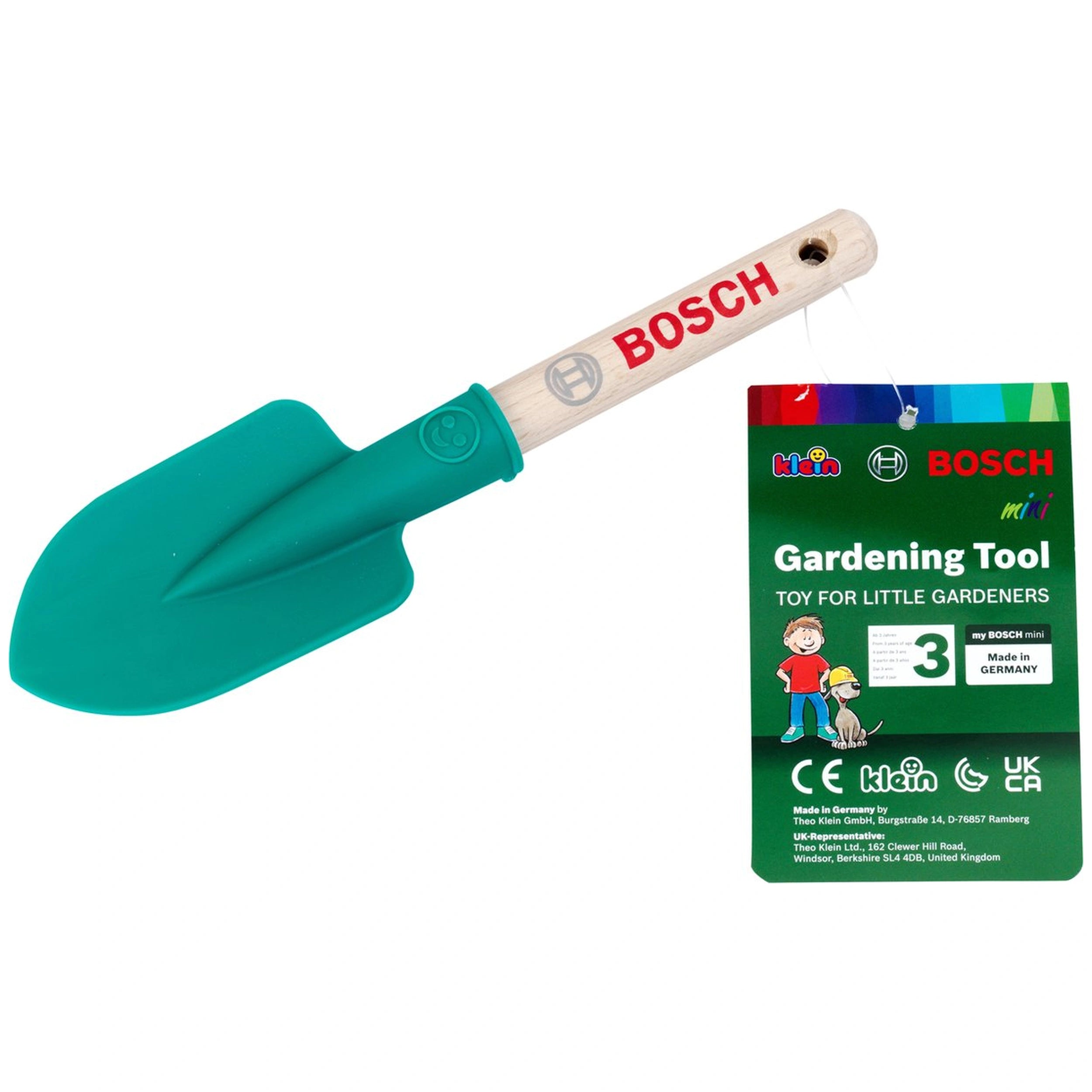 Introducing the Theo Klein Bosch Garden Hand Shovel Round Short, an essential piece of outdoor play equipment designed specifically for young gardening enthusiasts. This delightful toy spade is not only visually appealing with its Bosch branding, but it also provides children with a practical tool to explore the joys of gardening. Crafted with care in Germany, this hand shovel is perfect for little hands eager to dig, plant, and play in the great outdoors.